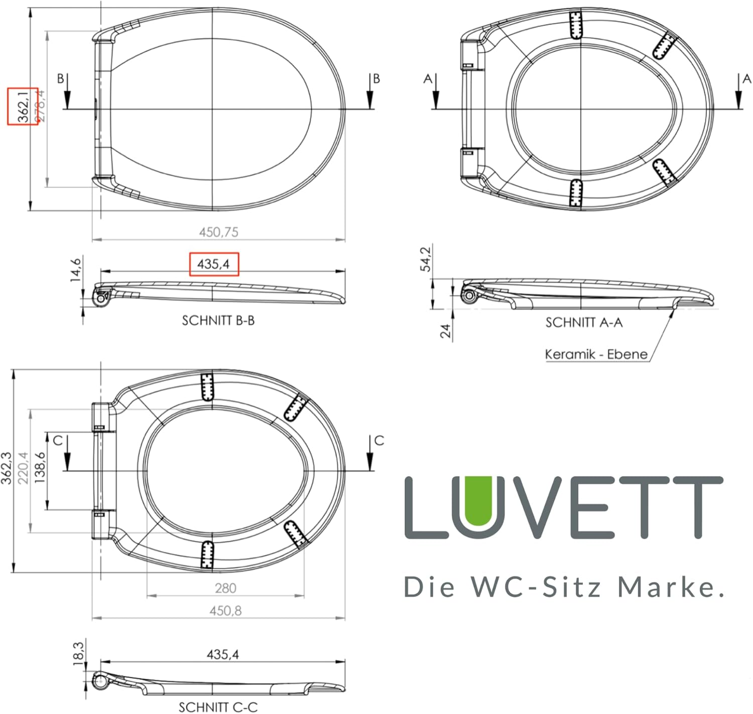 - Befestigungsset bestehend aus drei wählbaren Scharnier-Varianten aus Edelstahl für alle Keramiken: 'Spreizdübel' (von oben), 'Klappdübel' (von oben) und 'Steckmutter' (von unten) – Die einzigartige Lösung von LUVETT für einfache Befestigung