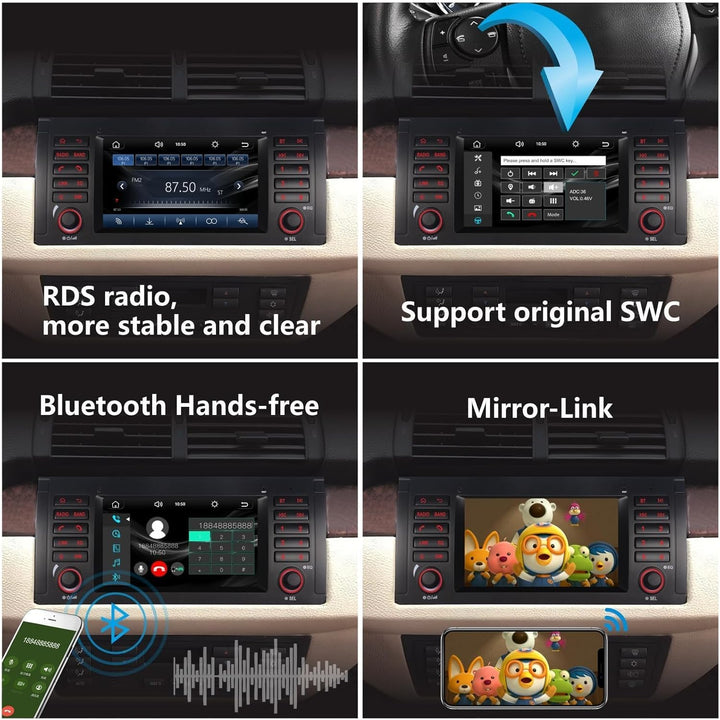 - 【Andere Funktionen】 1. Unterstützt Mirror Link, können Sie Telefon-Bildschirm-Inhalte wie Video auf dem Radio-Bildschirm zu synchronisieren; 2. eingebaut 16set-EQ-Modus, unterstützt Jazz, Rock, Pop, Klassik und andere EQ-Szenen; 3. USB-Anschluss