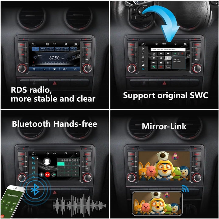 - 【Speziell für Audi】 Dieser Autoradio-Receiver wurde speziell für die Audi A3-Serie entwickelt, anwendbare Modelle sind: A3 2003–2012, S3 2006–2012, RS3 Sportback 2011–2012. Die Installationsgrösse beträgt: 245 * 138 mm, bitte bestätigen