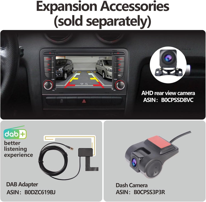 - 【Extra DAB+ Adapter】 Dieses Autoradio unterstützt die DAB+ Funktion. Sie können eine bessere Klangqualität und eine grössere Anzahl von digitalen Audiokanälen geniessen. Der DAB+ Adapter ist separat erhältlich. Wenn Sie ihn benötigen, besuchen
