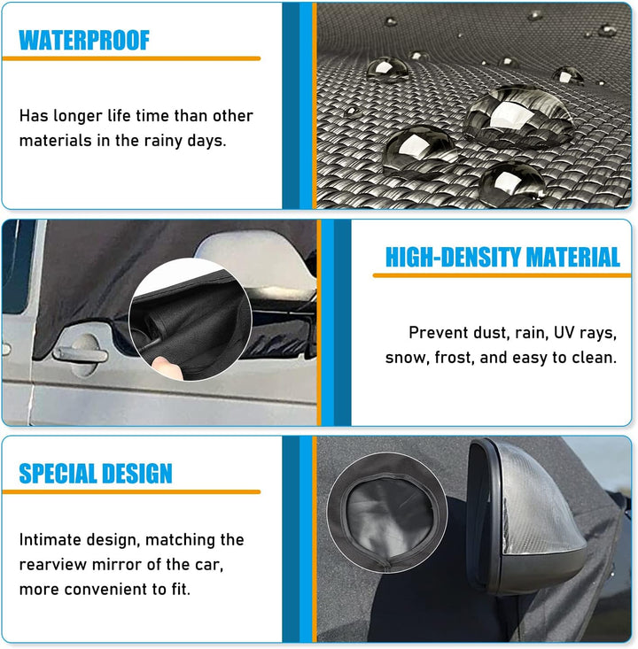 - 【Material】: Unsere Frontscheiben-Wickelabdeckung besteht aus 600D Oxford-Stoff. Gut schützt Ihre Autofront-Windschutzscheibe vor Sonne, Schnee, Frost, Staub, Kratzer, Schmutz usw. Im Vergleich zu 420D oder 210D ist das 600D-Gewebe wesentlich