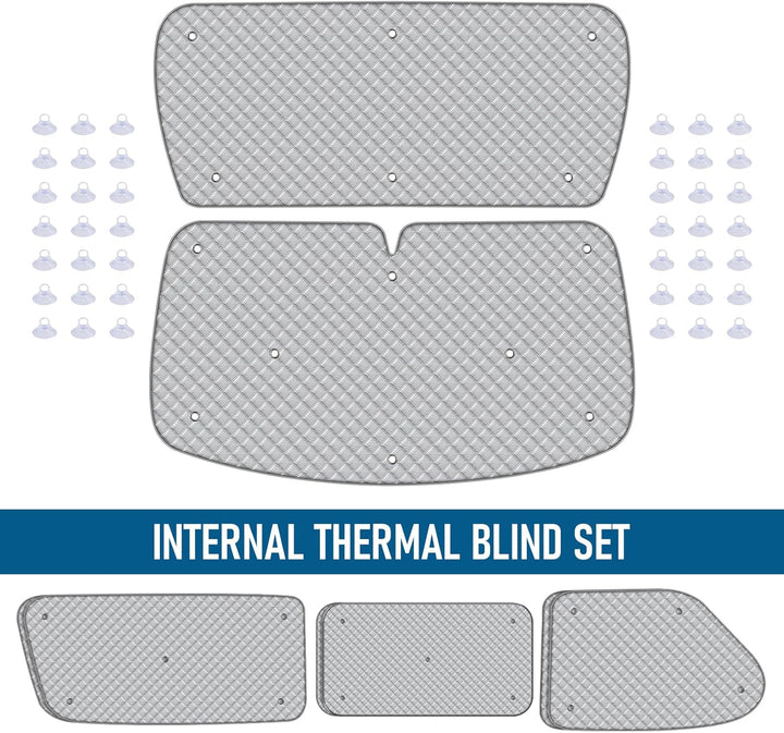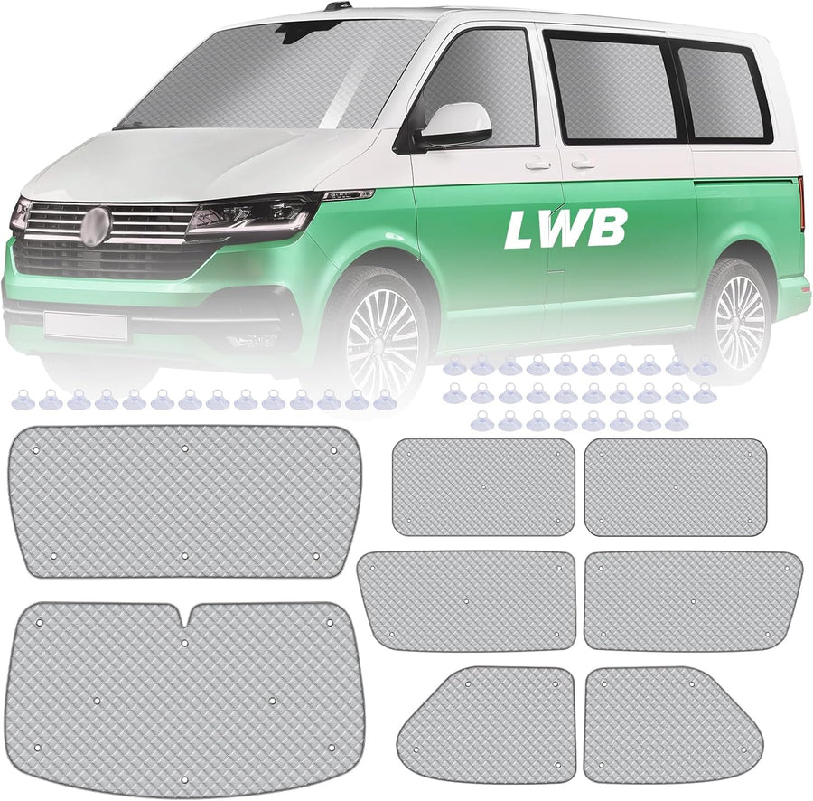 - 🛒【8-teiliges Set Thermomatten】Das 8-teilige Thermomatten-Set von MaxEarn ist speziell für VW LWB T4. Die Schutzmatten werden dreiteilig geliefert (1 x Frontfenster Sonnenschutz, 1 x Heckscheiben Sonnenschutz und 6 x Seitenfenster Sonnenschutz).