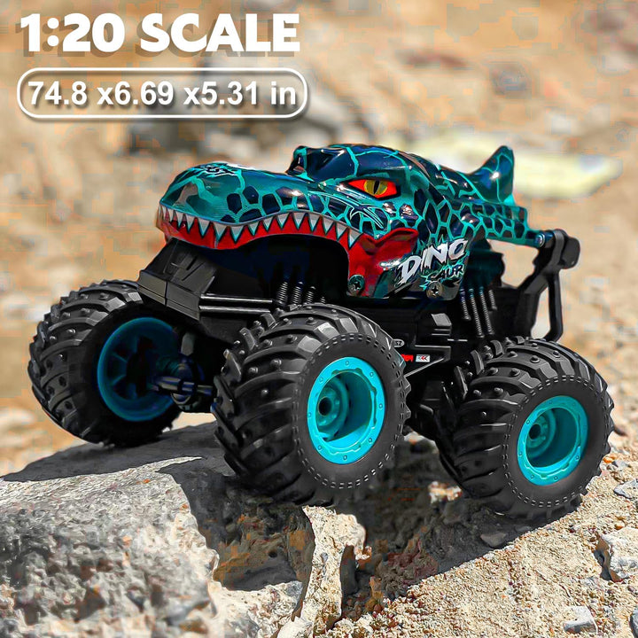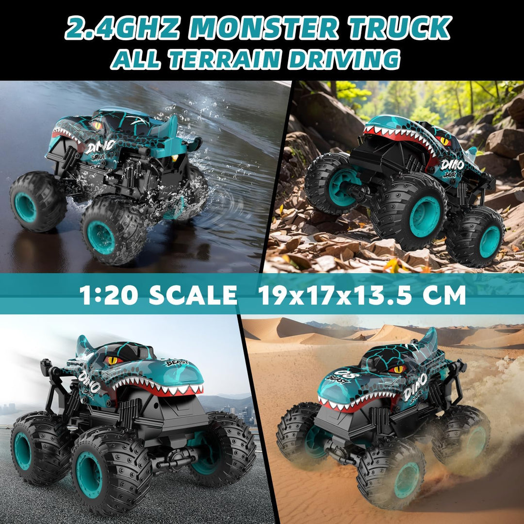 - Leicht zu bedienender 2,4-GHz-Fernbedienung: Wir haben den Dinosaurier-Monstertruck mit einem 2,4-GHz-Frequenz-Controller ausgestattet, der voll funktionsfähig und einfach zu bedienen ist. Die maximale Reichweite beträgt bis zu 80 cm. Es unterstützt
