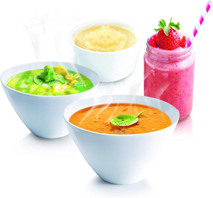 - Bereiten Sie eine breite Palette von Rezepten vor: 4 automatische Kochprogramme von 4 bis 25 Minuten; für samtige Ergebnisse; Suppen mit Stücken; Kompott und Mixen von kalten Zubereitungen wie Smoothies, Cocktails...