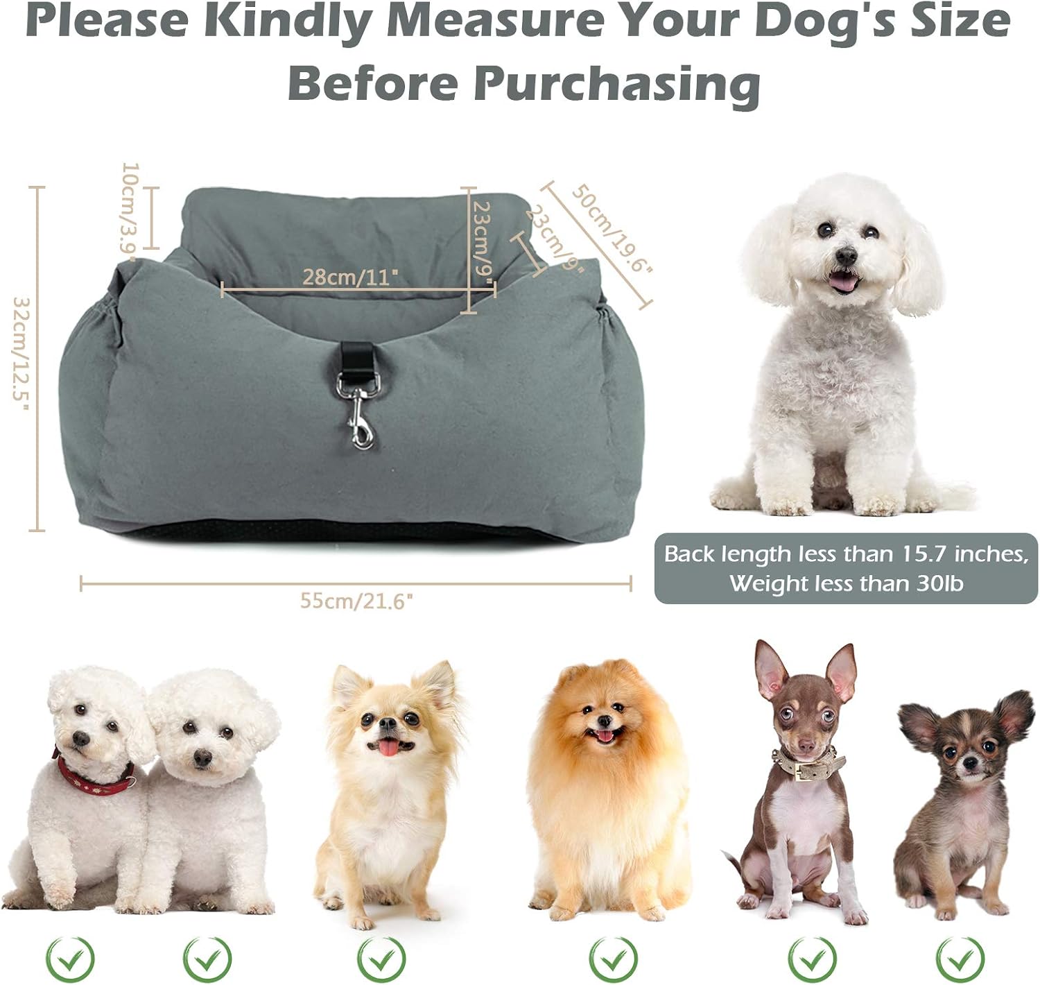 - 🐕Grösse: Äussere Abmessungen: 55 cm x 50 cm x 35 cm.Auf dem Hundeautositz fühlen Ihre Haustiere sich sicher und es gibt eine hervorragende Unterstützung für Kopf, Hüfte und Knochen bietet. ❗ACHTUNG❗: Nur für kleine Hunde und einige Medienhunde geeignet, mit einer Rückenlänge von weniger als 15,7 Zoll und einem Gewicht von weniger als 30 Pfund. Wenn Ihr Haustier eine Länge von fast 15,7 Zoll hat, wird empfohlen, ein grosses zu wählen. Bitte überprüfen Sie die Grösse vor dem Kauf sorgfältig, danke!
