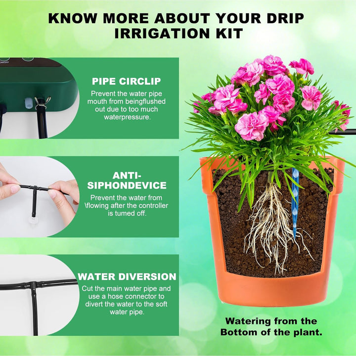 - 【ANTI-SIPHON-DESIGN & AUTOMATISCHER ALARM】: Die bewässerungssystem garten installiert Anti-Siphon-Einstellungen am Wasserauslass, um das Siphon-Phänomen zu verhindern, wenn der Wassertank höher als die Pflanzen ist. bewässerungssystem solar gibt