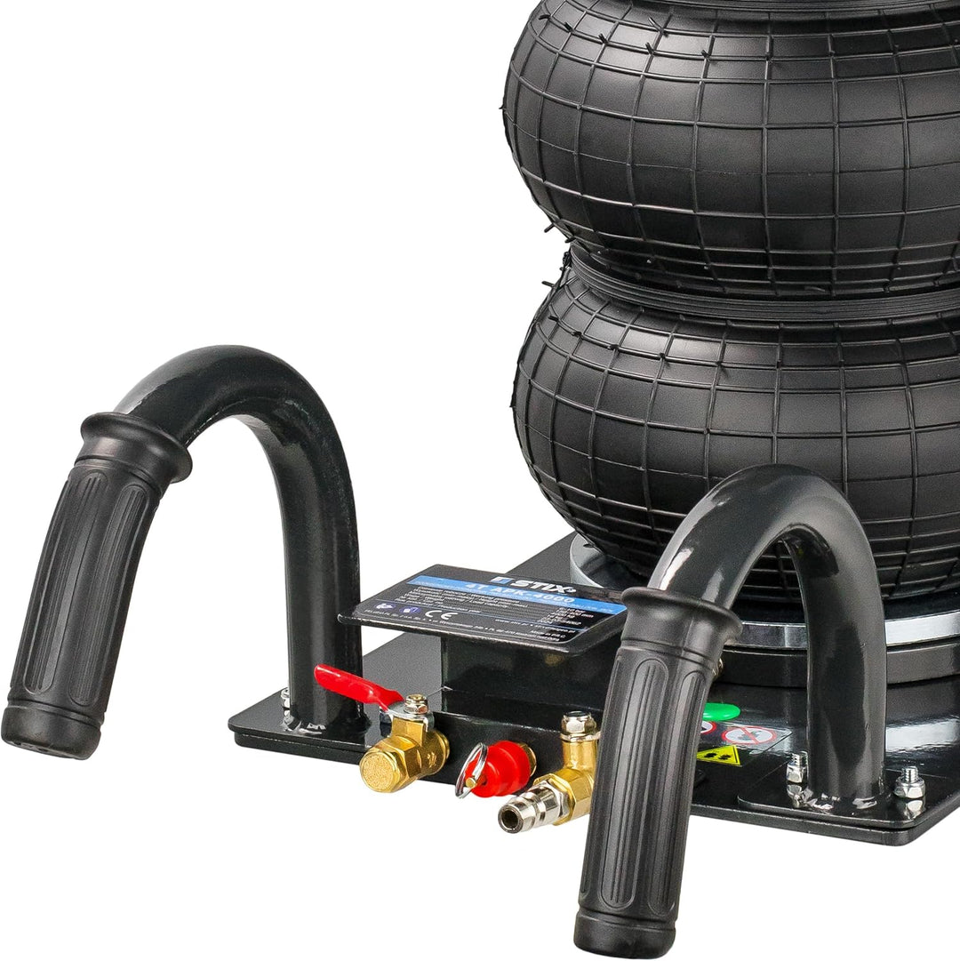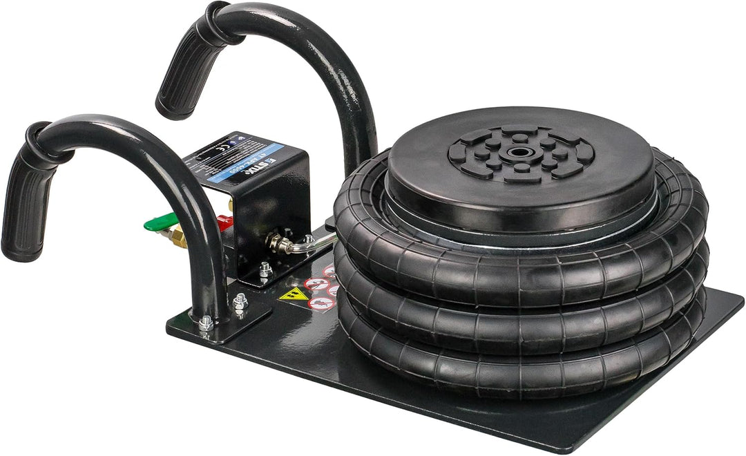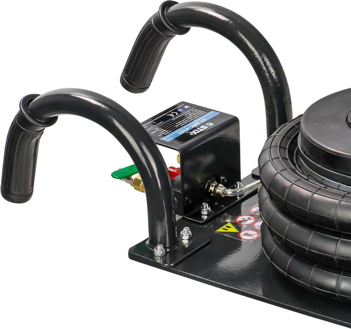 - Die maximale Höhe: 400 mm / Die minimale Höhe: 150 mm / Tragkraft: 4000 kg / Durchmesser des Luftrings: 250 mm / Durchmesser des Gummifusses: 110 mm / Druckluftanschluss: 3/8"