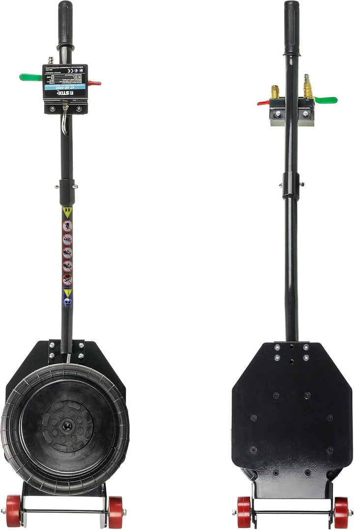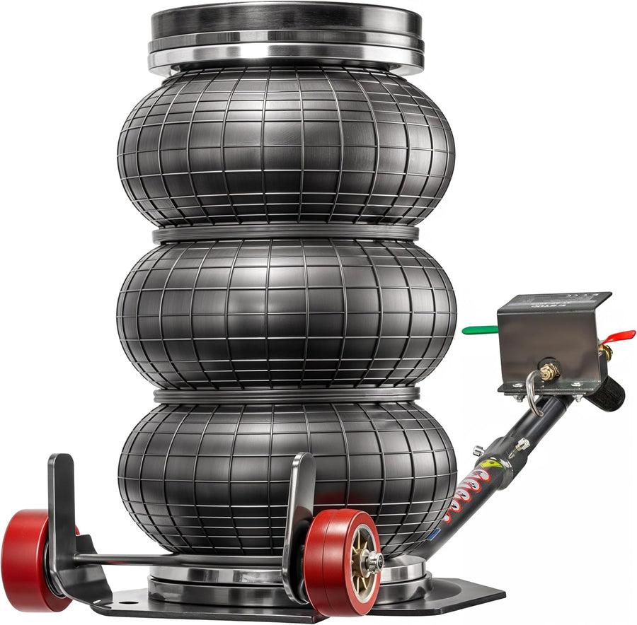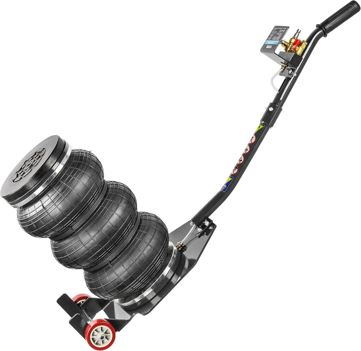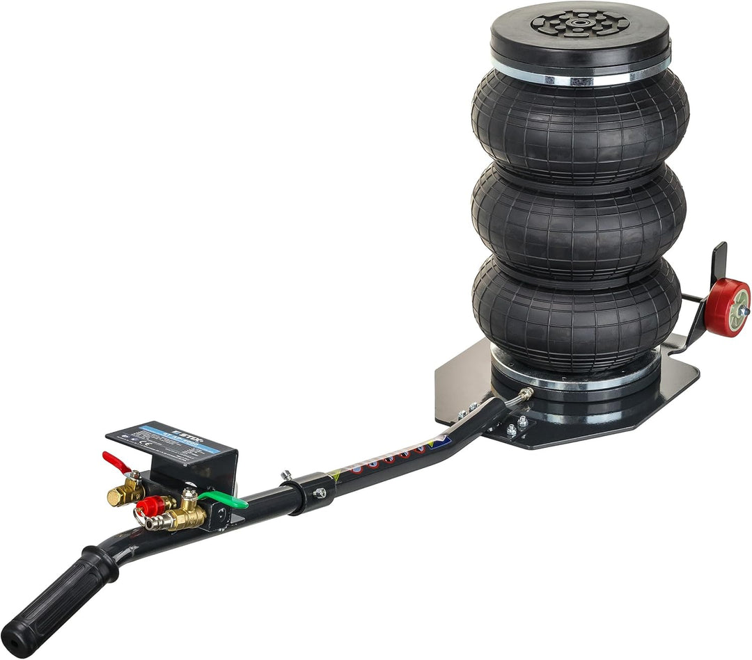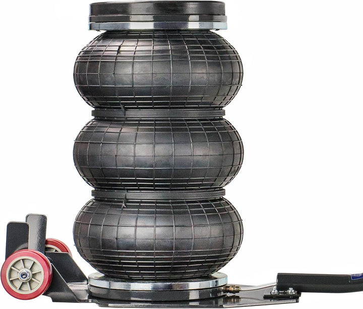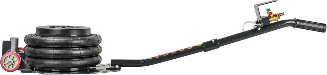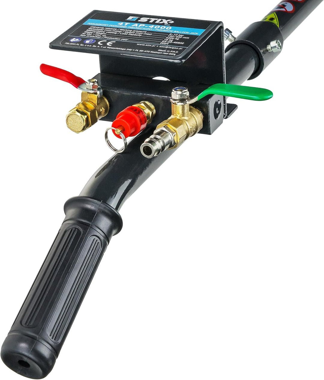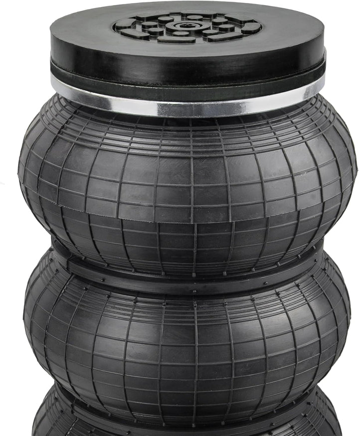 - Die maximale Höhe: 400 mm / Die minimale Höhe: 150 mm / Tragkraft: 4000 kg / Länge des Griffs: 71 cm / Durchmesser des Luftrings: 250 mm / Durchmesser des Gummifusses: 110 mm / Druckluftanschluss: 3/8"