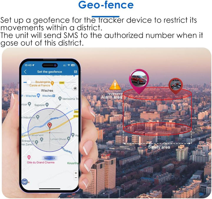 - đăMehrere Warnungenă: Das gps tracker auto ohne abo kann mit mehreren Warnungen eingerichtet werden, wie z. B. Vibrationswarnungen, Geschwindigkeitswarnungen, Geo-Fencing (bei dem das gps tracker auto automatisch eine Warnung sendet, wenn es einen