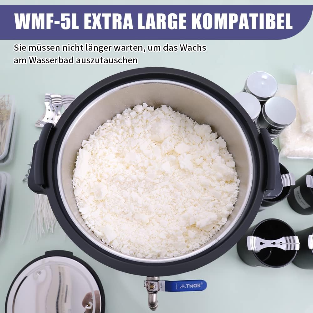 - 【5-Quart-Wachsschmelztopf】TOAUTO hat unseren WMF-5L-Kerzenwachsschmelztopf entwickelt, um Kerzen in grossen Mengen einfacher als je zuvor herzustellen! WMF-5L kann 5,2 Liter Wachs auf einmal verarbeiten, verbessert Ihre Produktionslinie für die