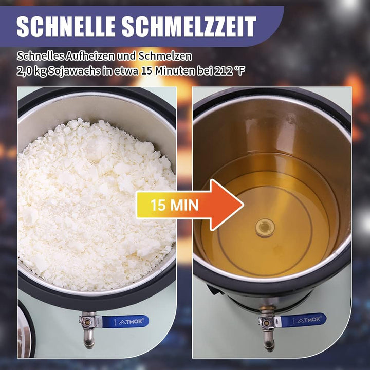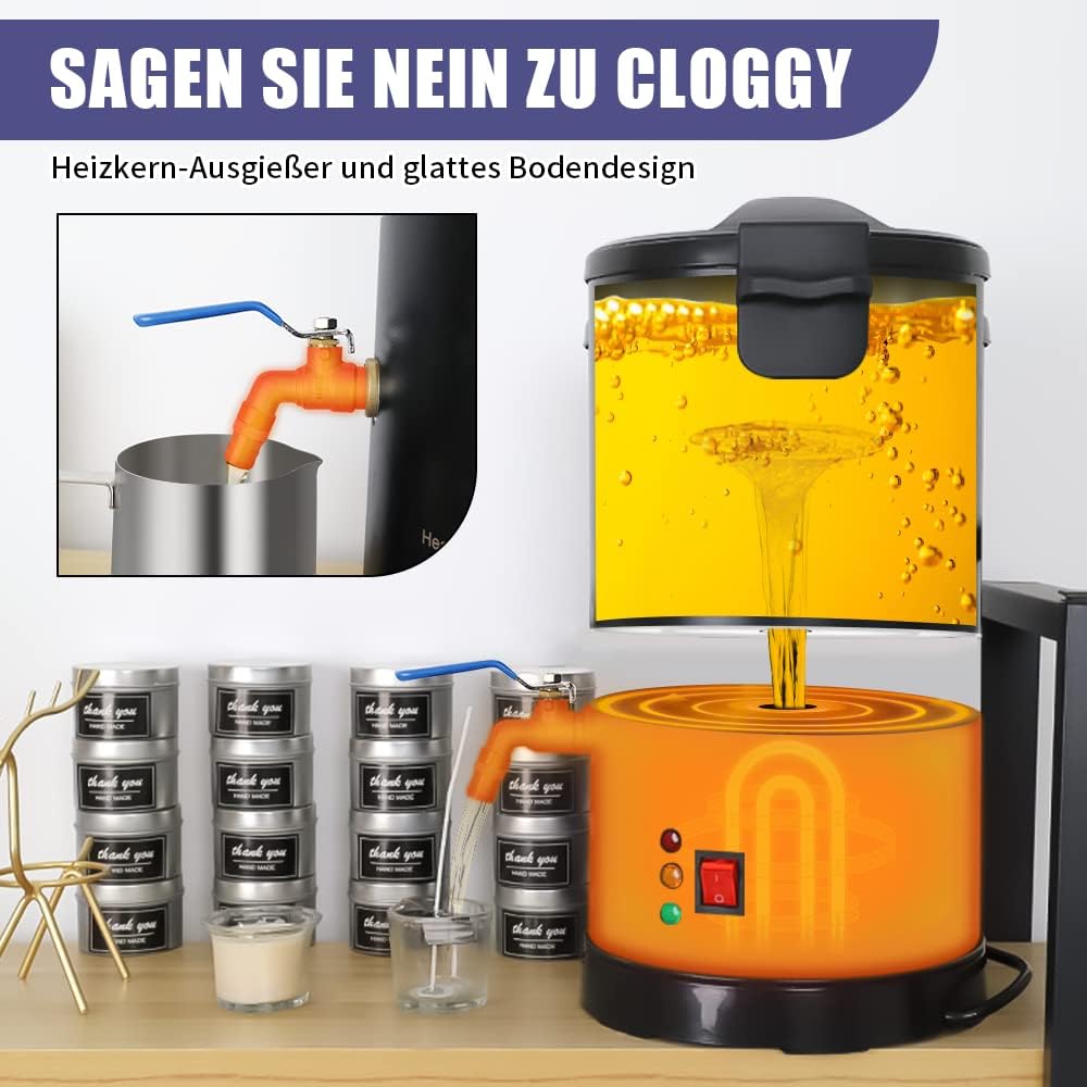 - 【Schnelleres Giessen Schmelzgerät】 2 kg Sojawachs kann in etwa 15 Minuten bei 212 ° F geschmolzen werden. Die Düse befindet sich tiefer als der Boden des Innenbehälters und das Zapfloch befindet sich in der Mitte des Bodens und steht nicht