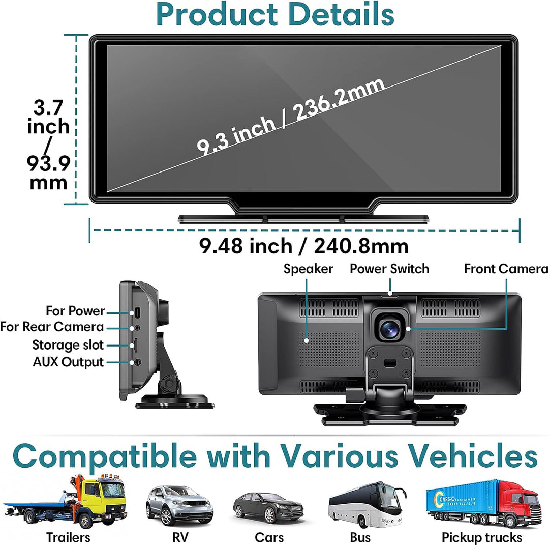 - 🚘【Fit for All Different Car Type 7V-32V】Portable car stereo with wireless apple carplay, android auto, bluetooth functions and more, suitable for most motor vehicles (supports 7V-32V), such as cars, trucks, vans, buses, pickups, ect. It's the best choice if your car is without factory original screen.