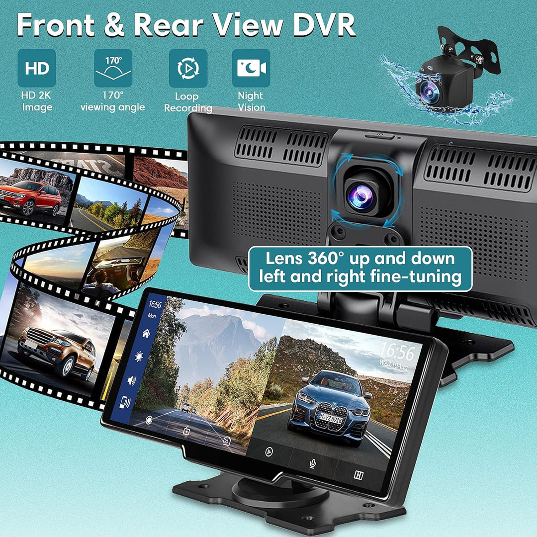 - 🚘【Loop Recording Dash Cam and Backup Camera】This DVR car stereo will come with a 64GB TF card as gift (it can be expanded up to 256GB). The Dash Cam and Rear Driving Recorder with night vision, providing excellent video with sharp picture quality and vivid color even in the starlight environment, supports automatic gain control, automatic white balance and automatic backlight compensation. Loop Recording allows continuous recording even if the memory card reaches full capacity.