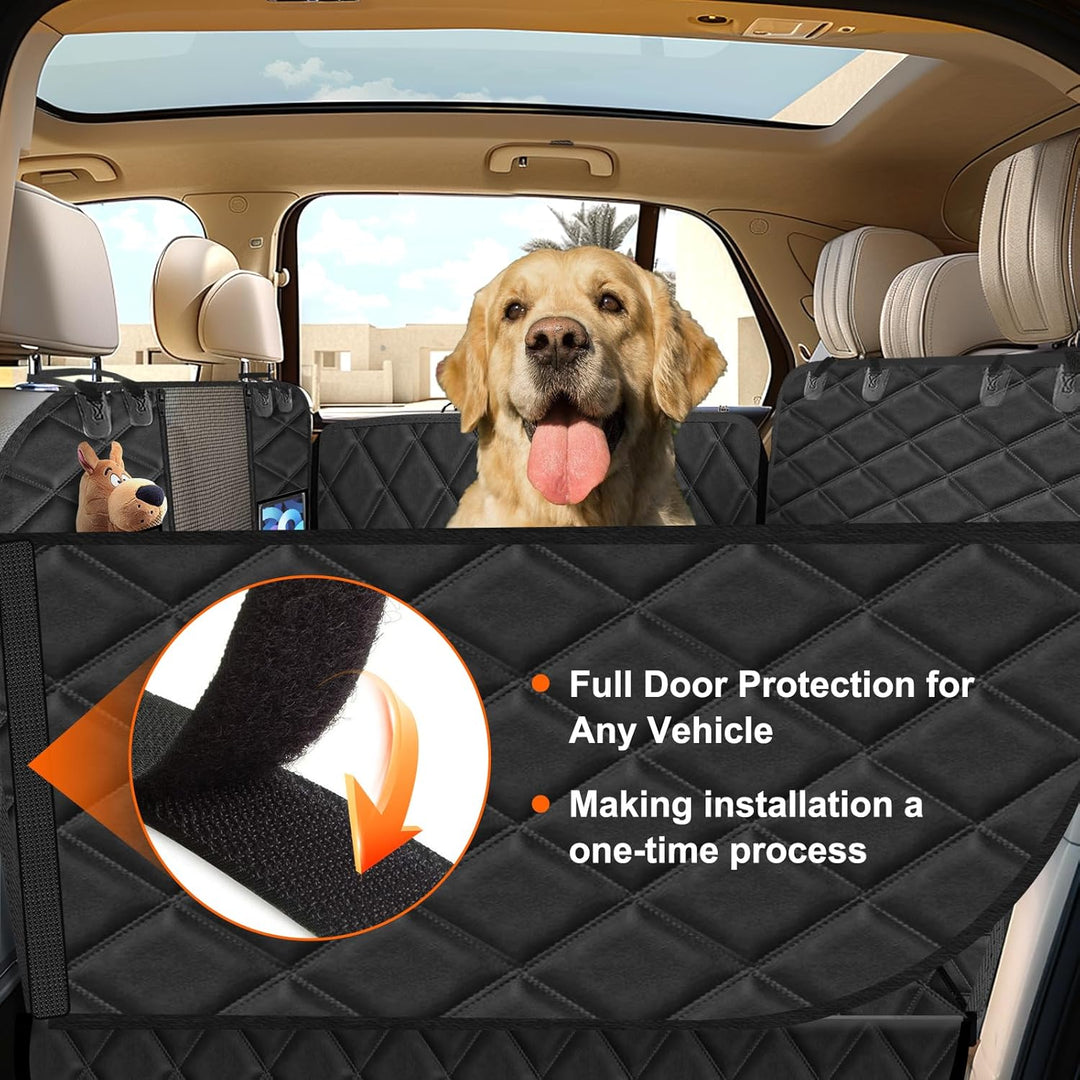 - [Mühelose Installation]- Diese Hunde-Rücksitzabdeckung ist einfach zu installieren - setzen Sie einfach die seitlichen Kunststoffeinsätze in die Fensteröffnungen des Autos ein, um die Türen zu schützen - Sie müssen sie nicht jedes Mal neu