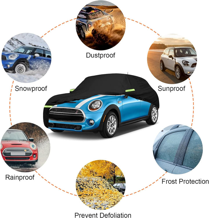 - Kompatibilität: Wetterfeste Autoabdeckung Ersatz für Mini Cooper 3-Door Grösse: 151*68*56.5 Zoll, Ersatz für Mini Cooper 5-Door Autoabdeckung Grösse: 157*68*56.5 Zoll, bitte überprüfen Sie Ihr Automodell vor dem Kauf.