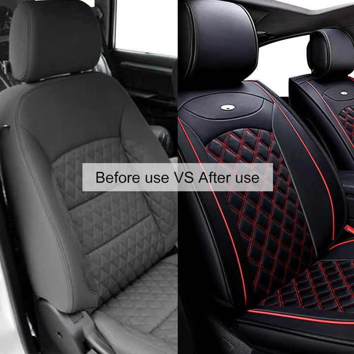 - PU-Leder-Material: Unsere Autositzbezüge bestehen aus hochwertigem PU-Leder-Material, das weich, bequem und langlebig ist. Sie wurden entwickelt, um Ihre Autositze vor Schmutz, Kratzern und sie sind leicht zu reinigen, Wenn der Sitzbezug verschmutzt