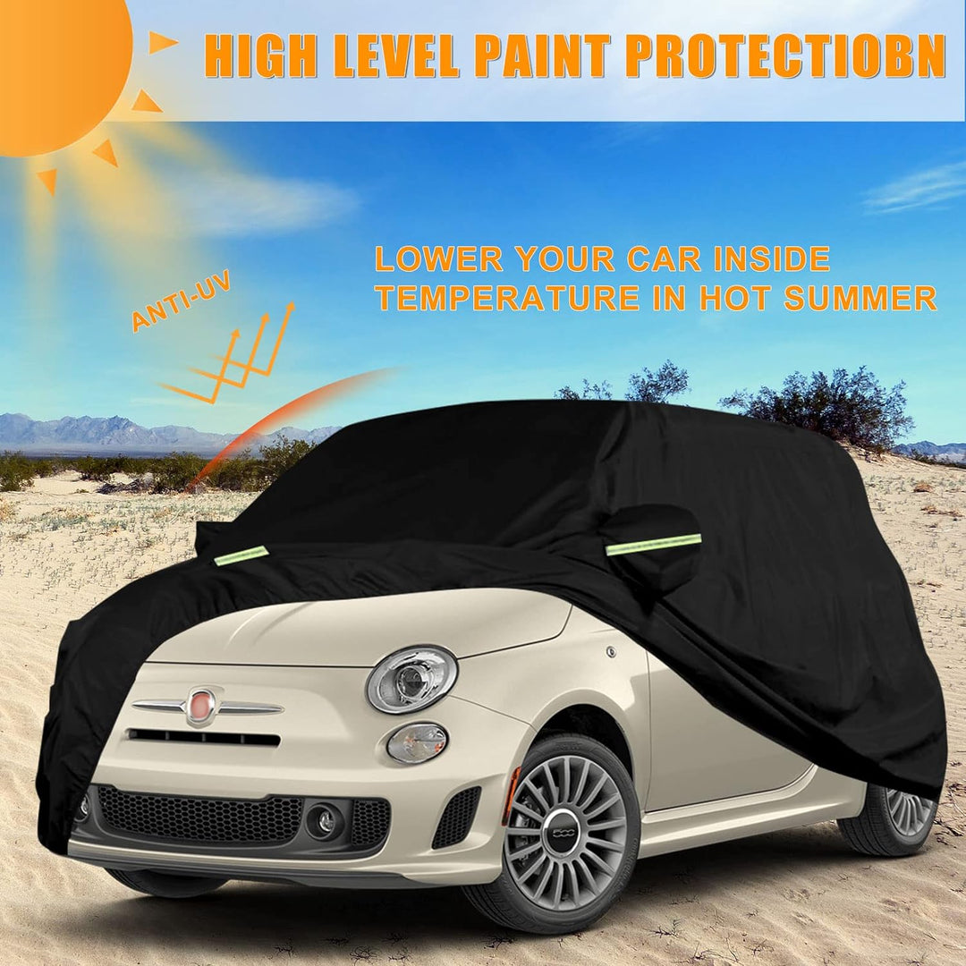 - Custom Fit:Unsere wasserdichte Allwetter-Autoabdeckung passt perfekt für Fiat 500/500C/500E/Abarth 500 2007-2022, bitte überprüfen Sie Ihr Automodell vor dem Kauf