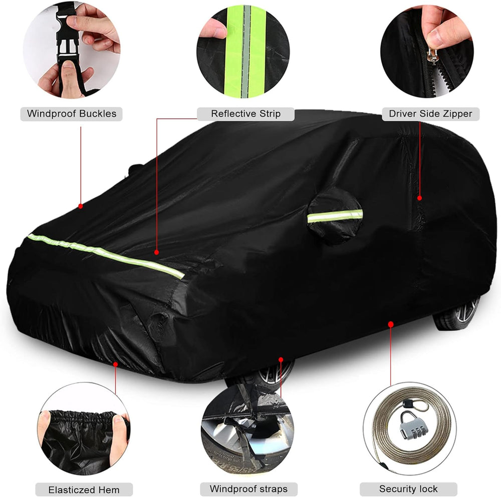 - All-Wetter-Schutz: Unsere Autoabdeckung bietet vollständigen Schutz vor schädlichen Elementen, unabhängig von der Jahreszeit. Ob es ein sonniger Sommertag oder eine stürmische Winternacht ist, unsere Autoabdeckung schützt Ihr Fahrzeug umfassend