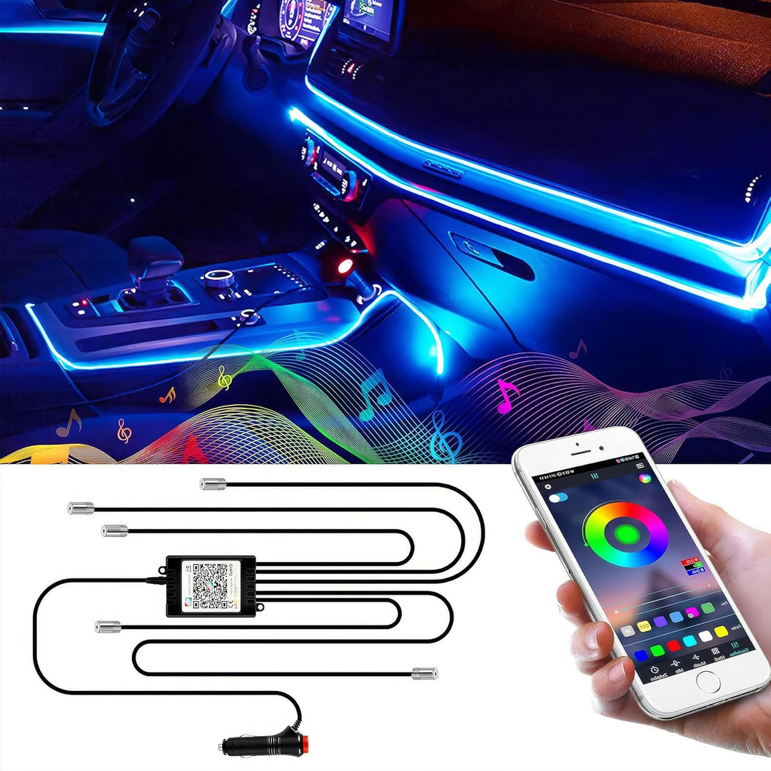 - Musikdekoration: Ambientebeleuchtung auto Eleganz im Auto, wenn Sie nachts fahren oder Musik geniessen.APP-Steuerung für Bluetooth-Verbindungstelefone, geeignet für IOS und Android, einfach zu bedienen