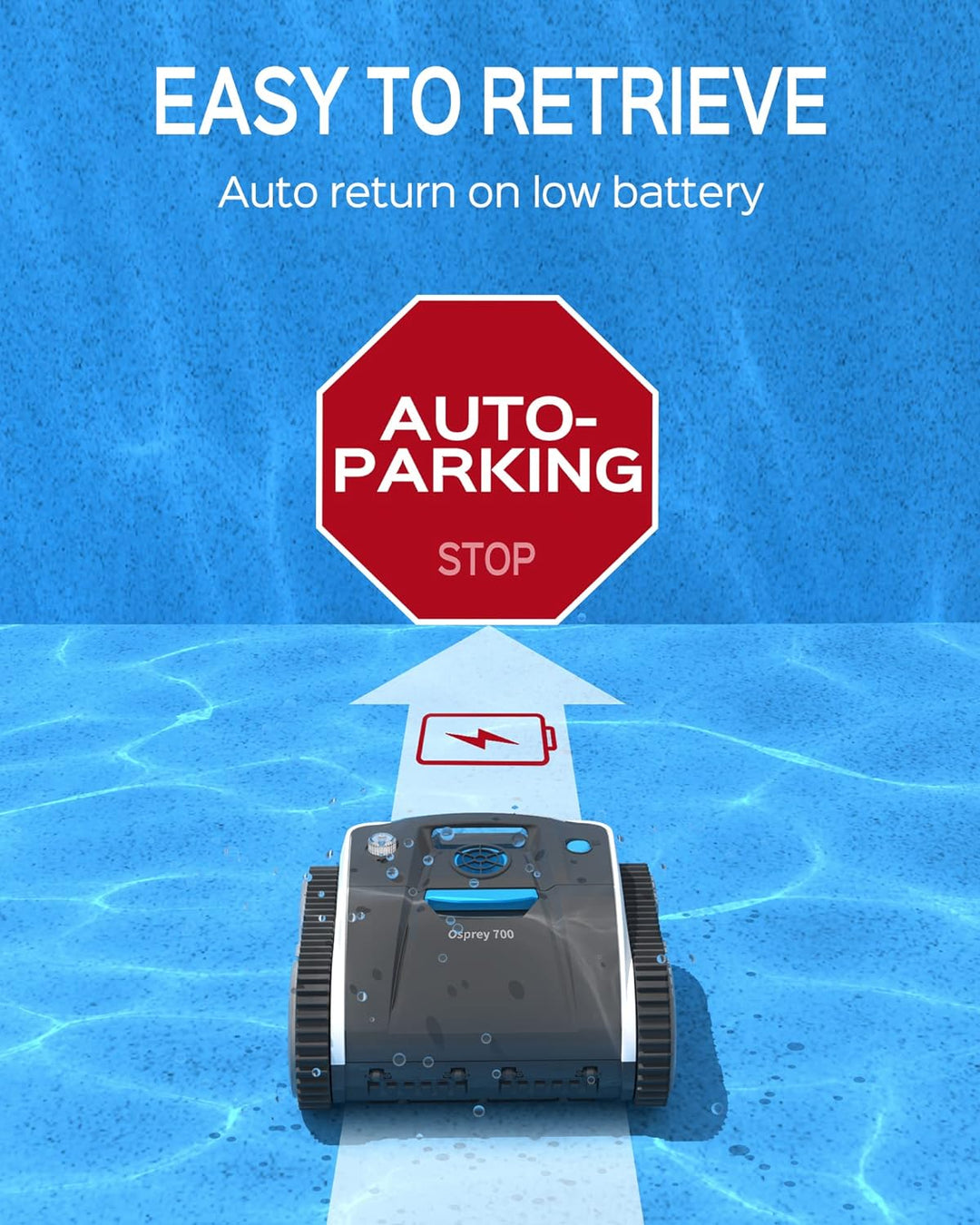 - Längere Akkulaufzeit und Schnelles Aufladen: Der Osprey 700 Cordless Pool Cleaner ist mit einem erstklassigen 8800-mAh-Akku mit bis zu 2 Stunden ununterbrochener Laufzeit für eingelassene Pools mit bis zu 120 Quadratmetern ausgestattet. Das