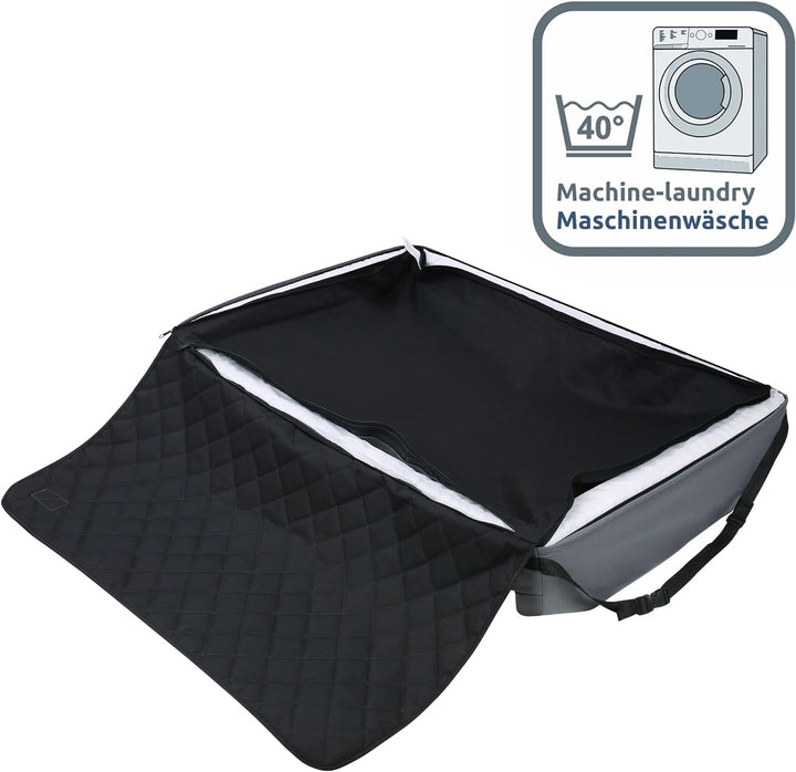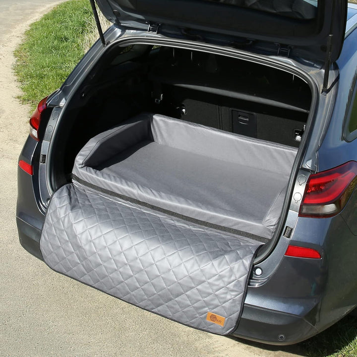 - Termoli KFZ Kofferraumbox für Hunde - mobiles Hundebett mitKunstleder Bezug, 5 cm starker Matratze, 5 cm Randpolsterung und grossem Stossstangenschutz. Der Aussenbezug kann in der Waschmaschine gereinigt werden