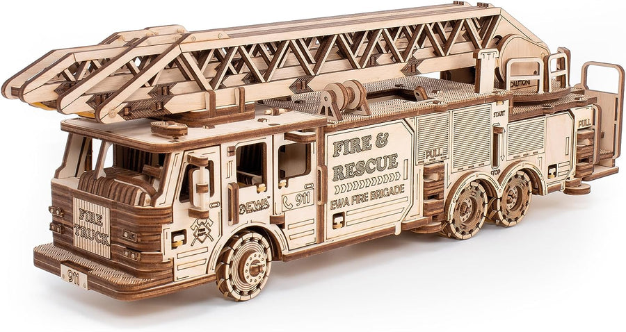 3D Puzzle Erwachsene Feuerwehrauto – DIY Holzbausatz Mechanische Puzzle mit Aufziehmechanismus, Leit