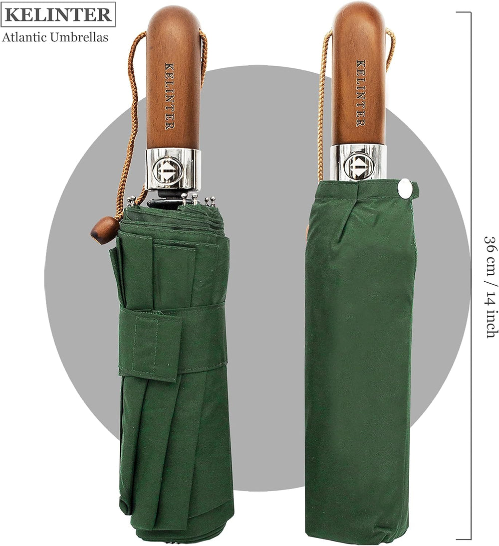 KELINTER Automatischer Klappschirm - 10 Verstärkte Streben, Teflon 300T, Windsicher, Holzgriff Ergon