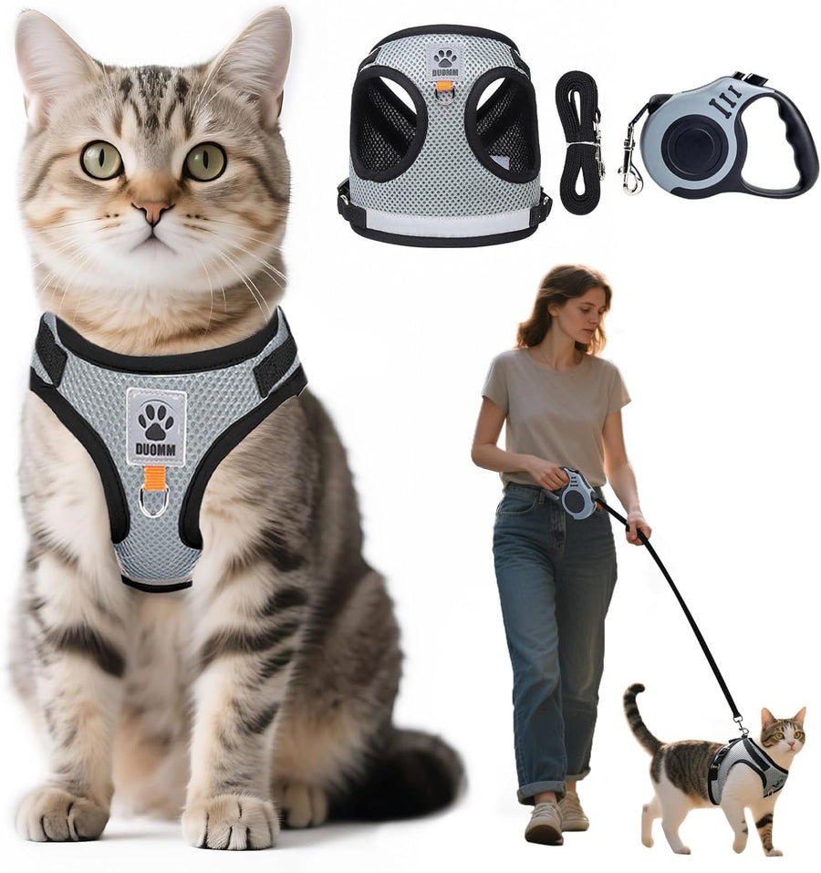 Katzen Geschirr Set mit Leine,Automatischem Katzengeschirr für Kleine Hunde mit 5 m/16,4 Fuss,Katzen