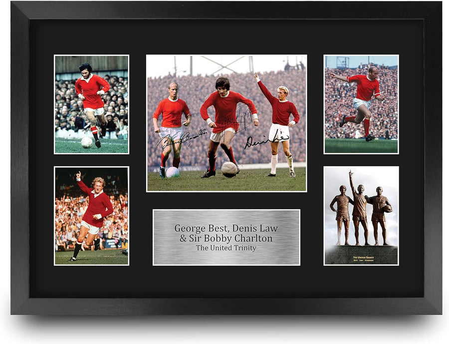 HWC Trading FR A3 Best Charlton Law The United Holy Trinity Geschenke Gedruckt, Signiert Autogramm B