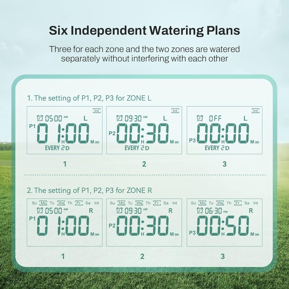 HiOazo Bewässerungscomputer, 2 ausgänge 6 Bewässerungs Programme pro Tag, Automatische und zeitspare
