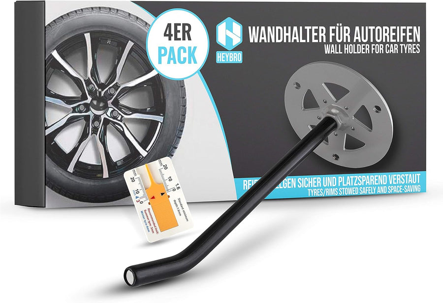 HEYBRO® Universale Reifen Wandhalterung im 4 er Set - platzsparende Aufbewahrung Ihrer Autoreifen -