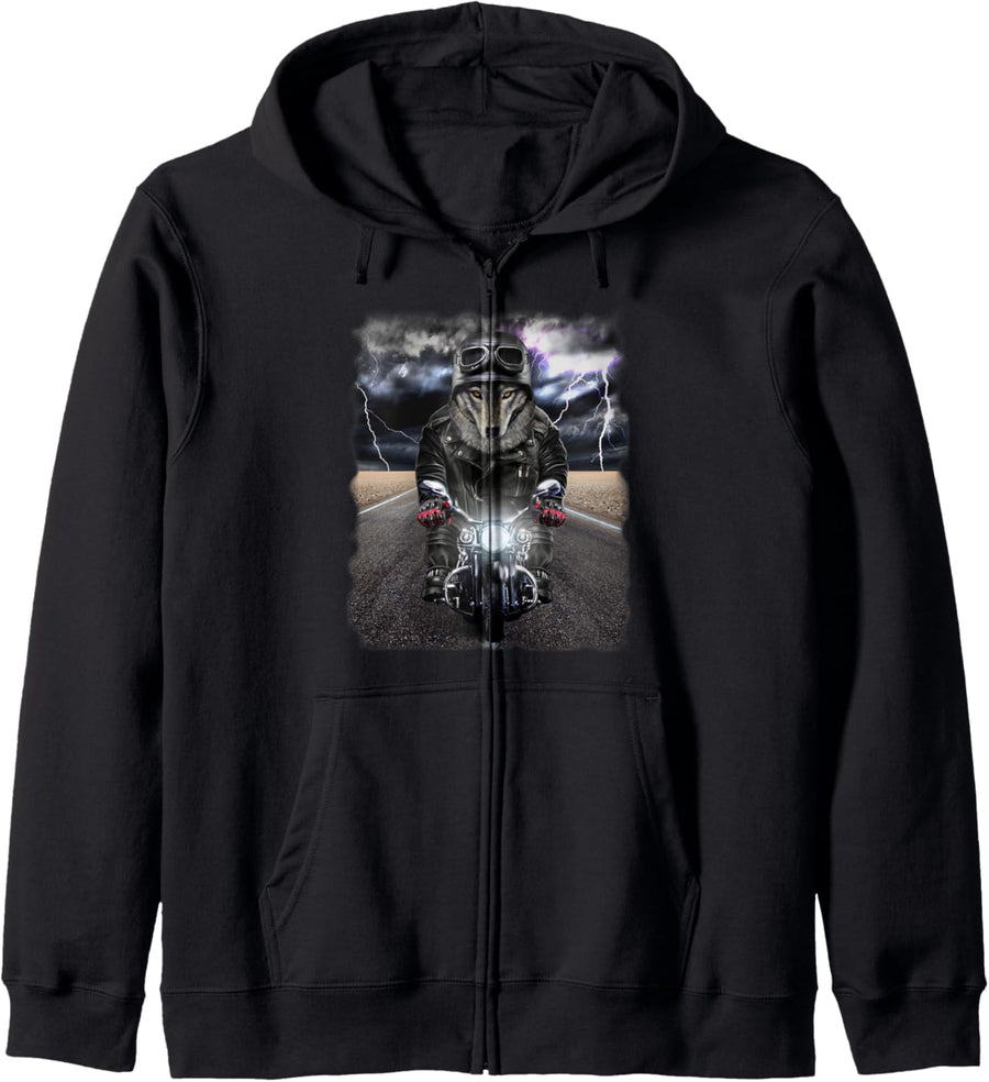 Grauer Wolf, die Motorrad auf Autobahn reitet Kapuzenjacke