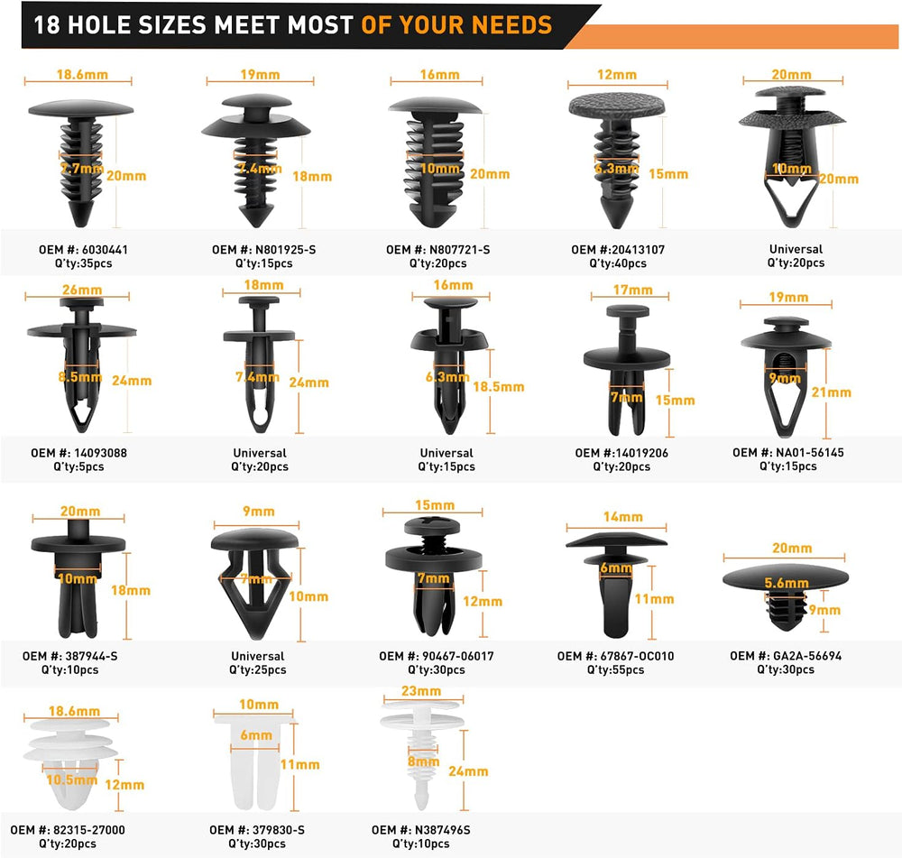 GOOACC 415 Stück Auto-Halterung Clips und Befestigungs-Entferner – 18 beliebteste Grössen Auto Push