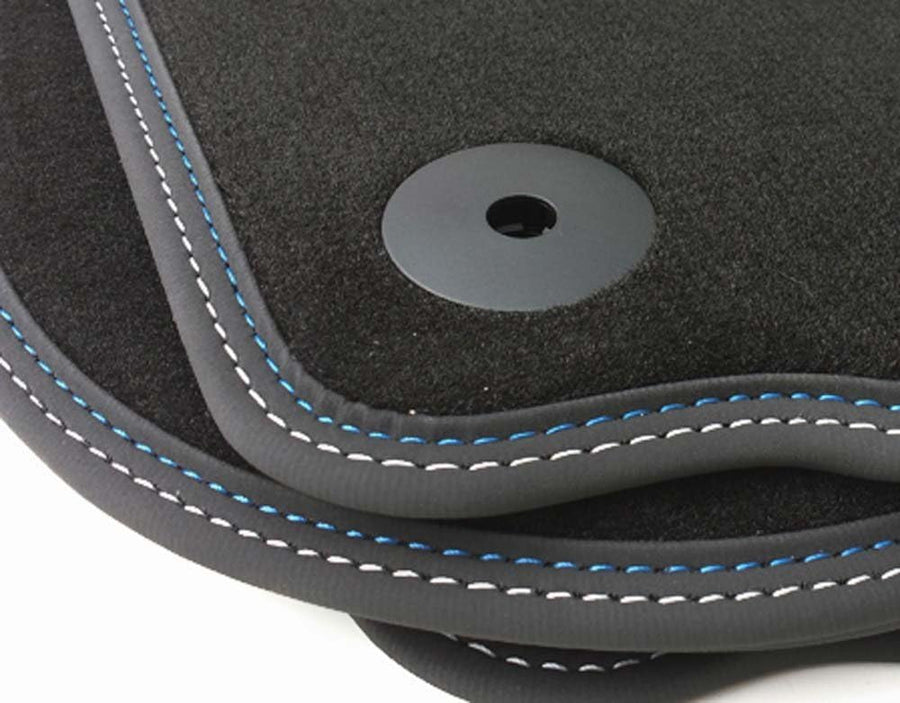 Fussmatten passend für Golf 5 6 Premium Velours Qualität Automatten 4-teilig Doppelnaht blau/weiss