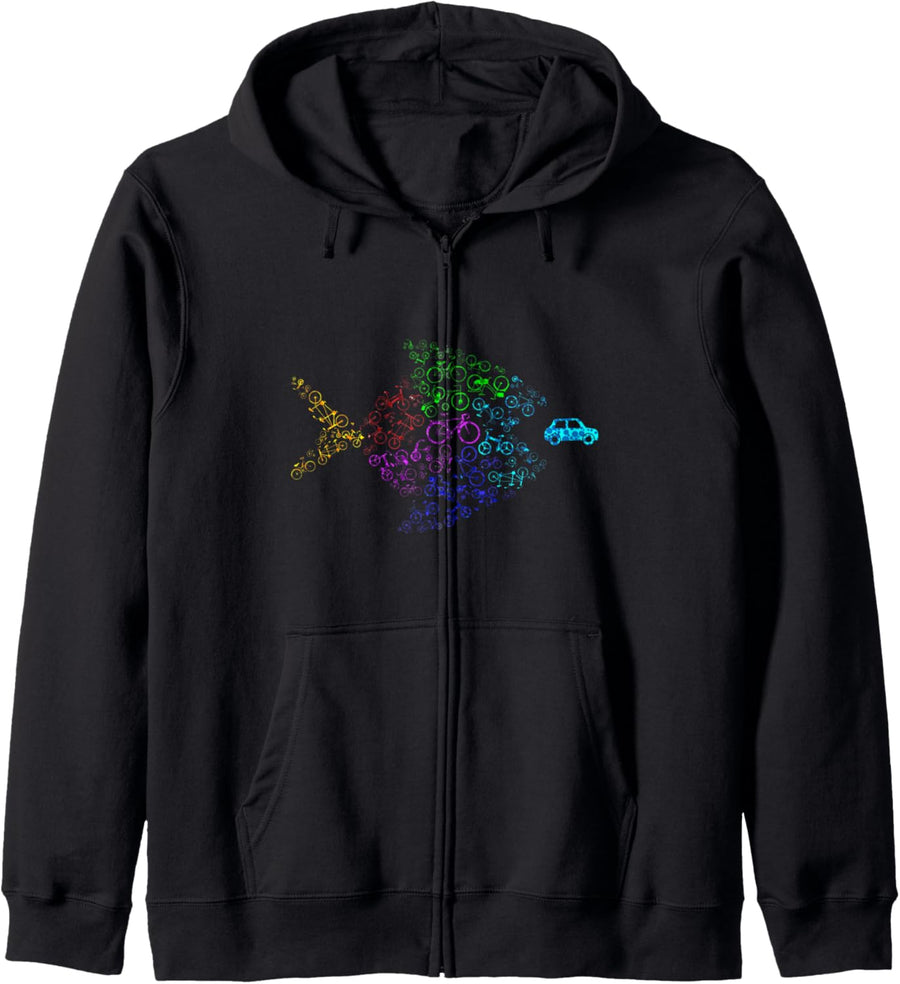 Fahrrad Hai Fisch frisst Auto PKW Radfahren Radfahrer Kapuzenjacke