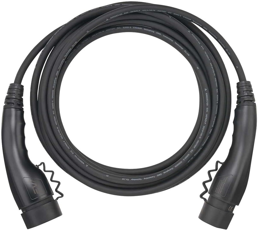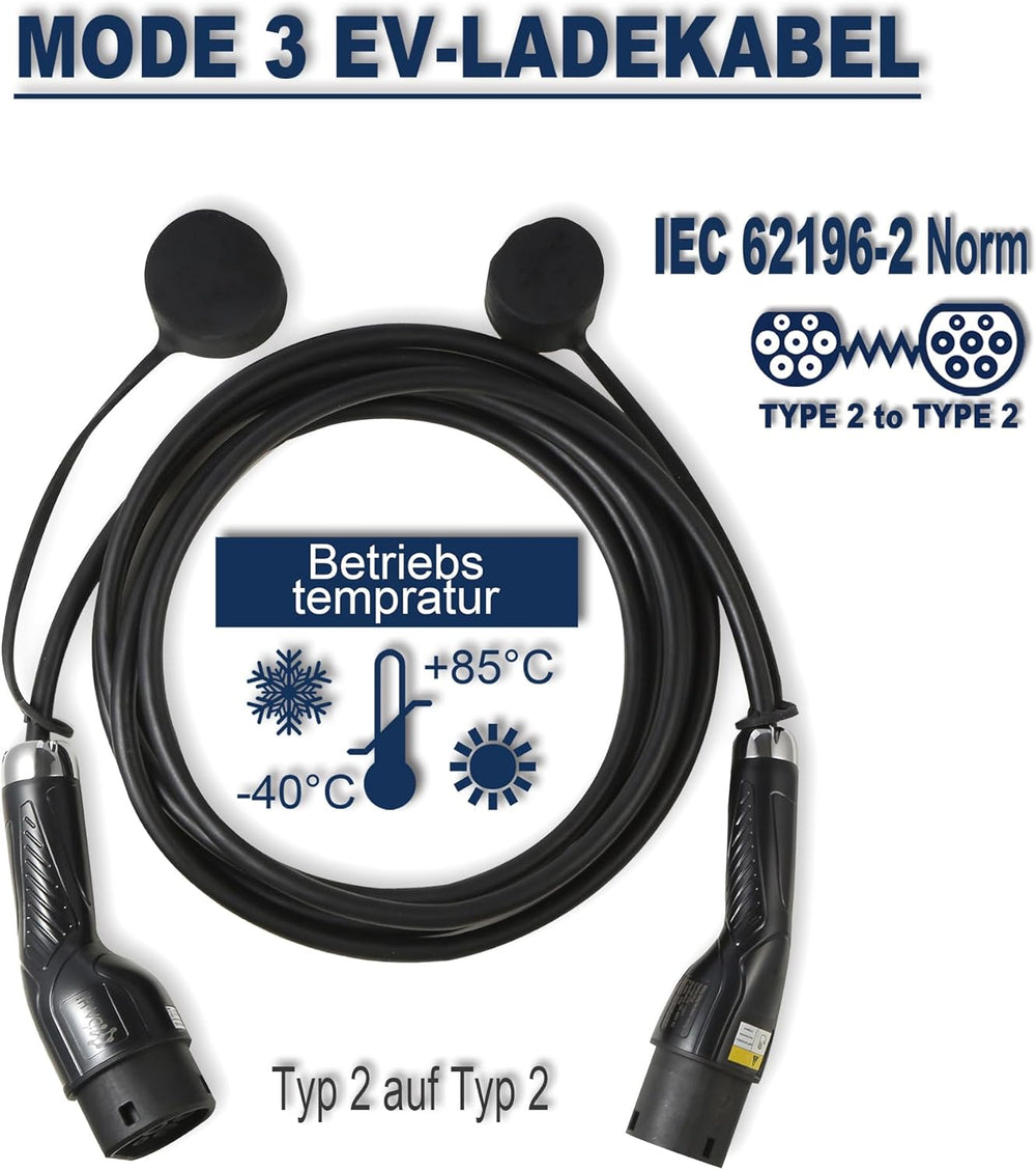 EV Ladekabel Typ 2 für Elektroauto und PHEV 11KW 16A 3-phasig 5m, TüV Zertifiziert, chic-schwarz 11K