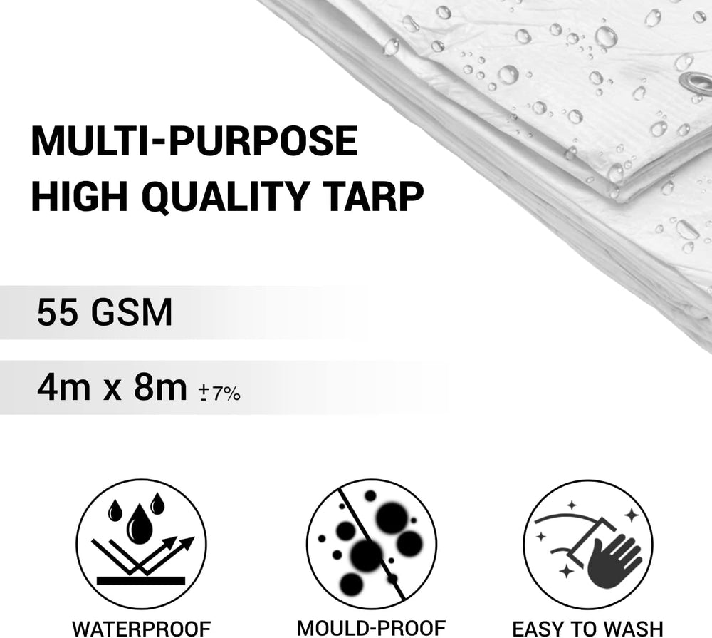 Diforma Abdeckplane, wasserdicht, weiss, 55 g/m², mit Metallösen, Schutzplane, Autoabdeckung, Mehrzw