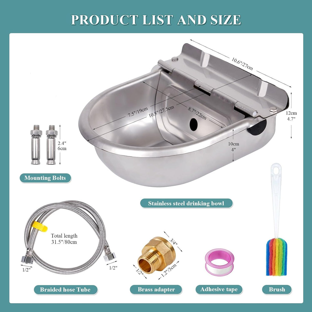 BREUAILY Automatische Tränkebecken aus Edelstahl Schwimmer Tränkebecken mit Drainageloch and 80cm Ge