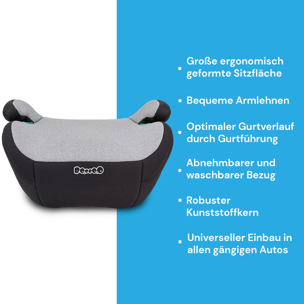 Booboo Safety Madrid Sitzerhöhung auto kinder ohne Isofix 125 bis 150 cm, i-Size - Black Grey