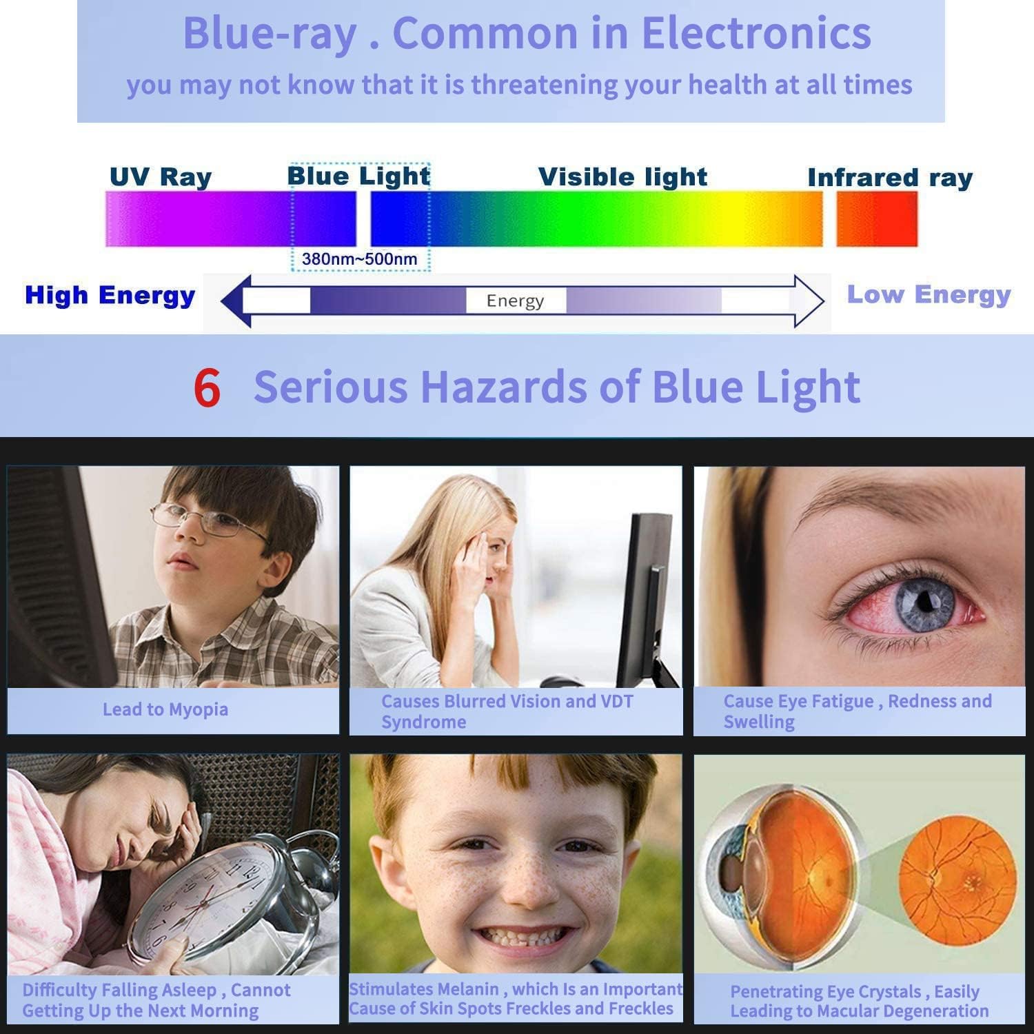 - ✅【Schädliches Blaues Licht & UV】Wir müssen den Computer für eine lange Zeit benutzen, während Hornhaut und Augenlinse nicht in der Lage sind, blauem Licht zu widerstehen oder es zu reflektieren. Wenn Sie unter trockenen Augen, Augenermüdung,