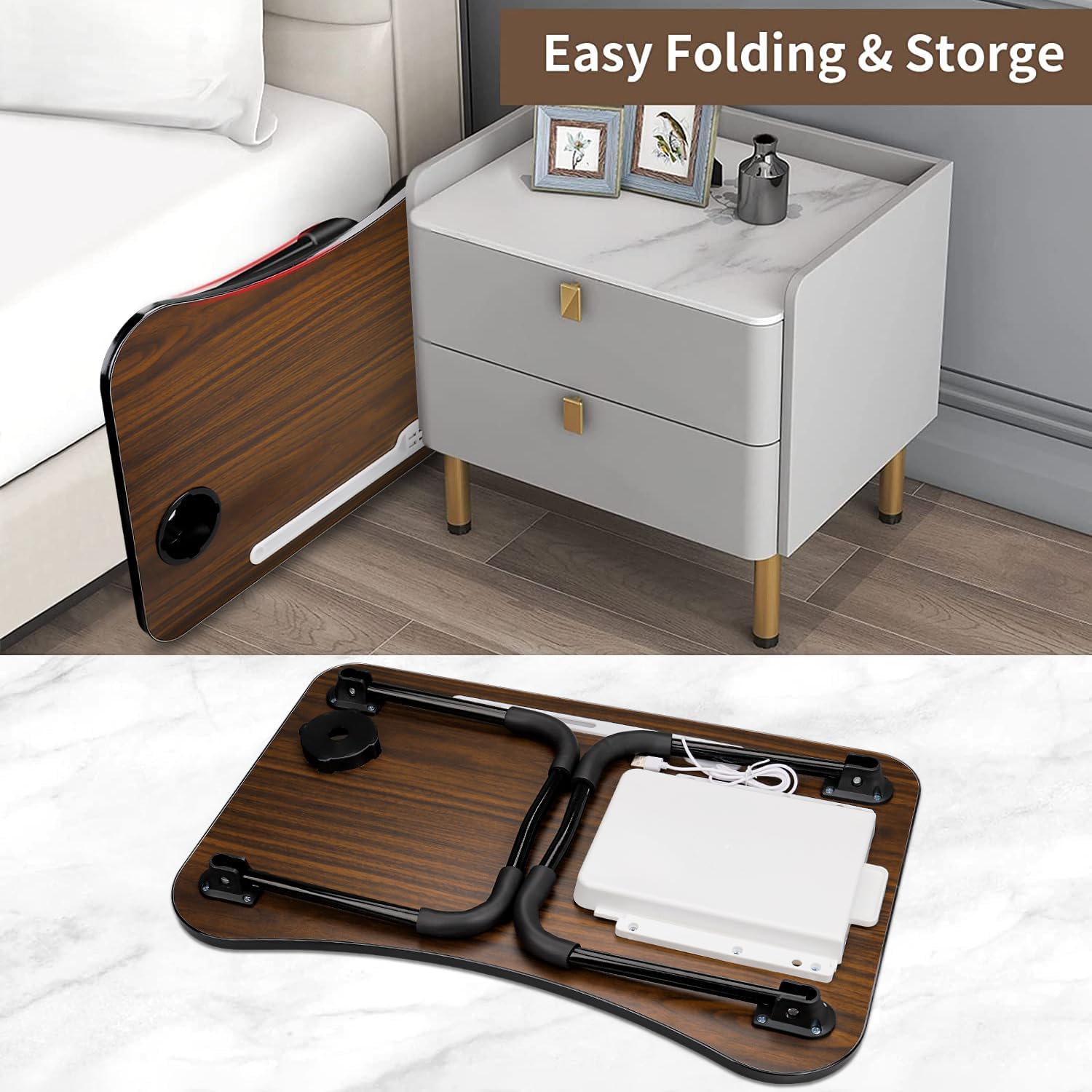 - 【Platz sparen】 - Der Laptoptisch Bett muss nicht montiert werden, die Tischbeine sind klappbar, öffnen Sie die Tischbeine verwendet werden, nur 3 Sekunden. Wenn Sie den Laptoptisch Klappbar nicht benutzen, können Sie ihn am Bett oder hinter der