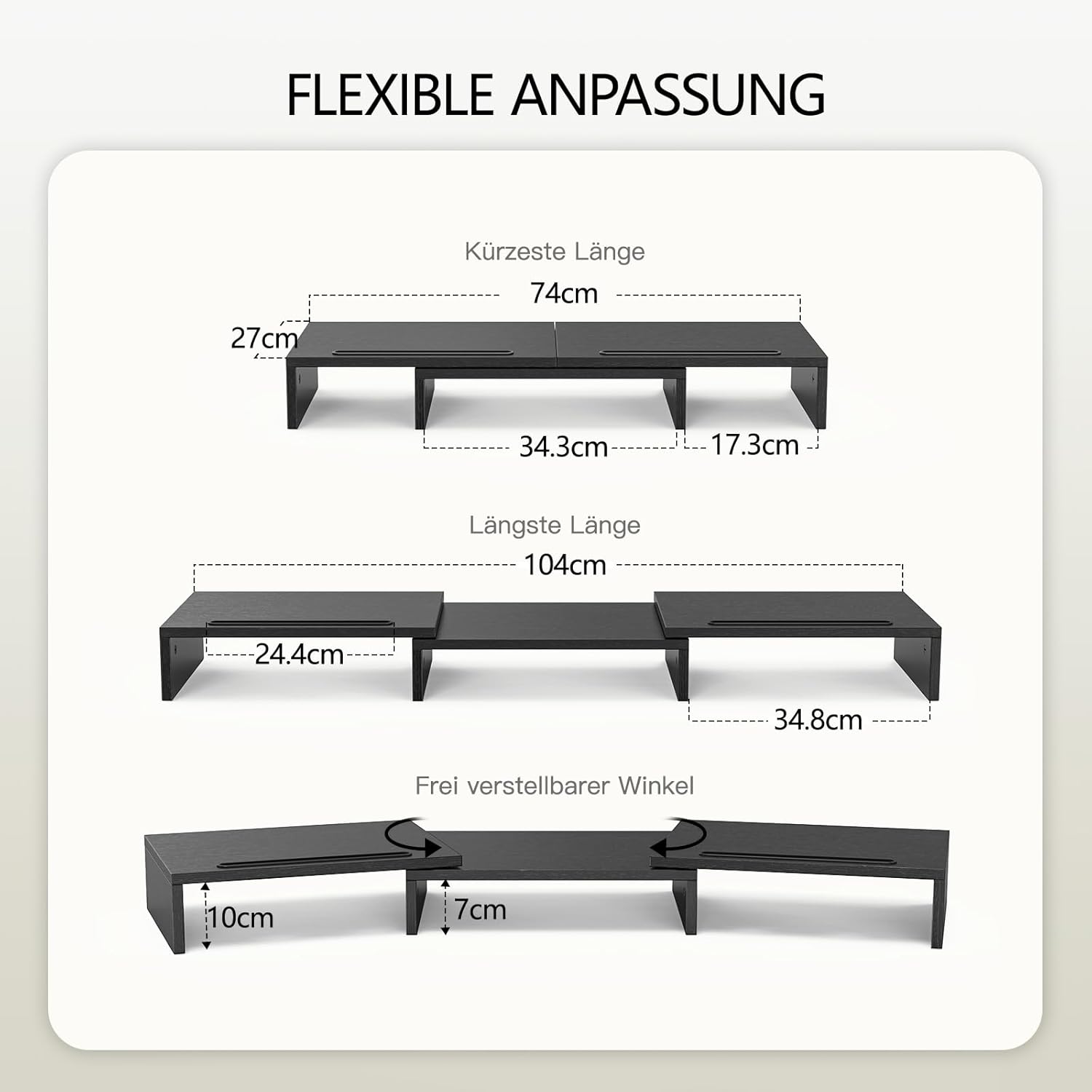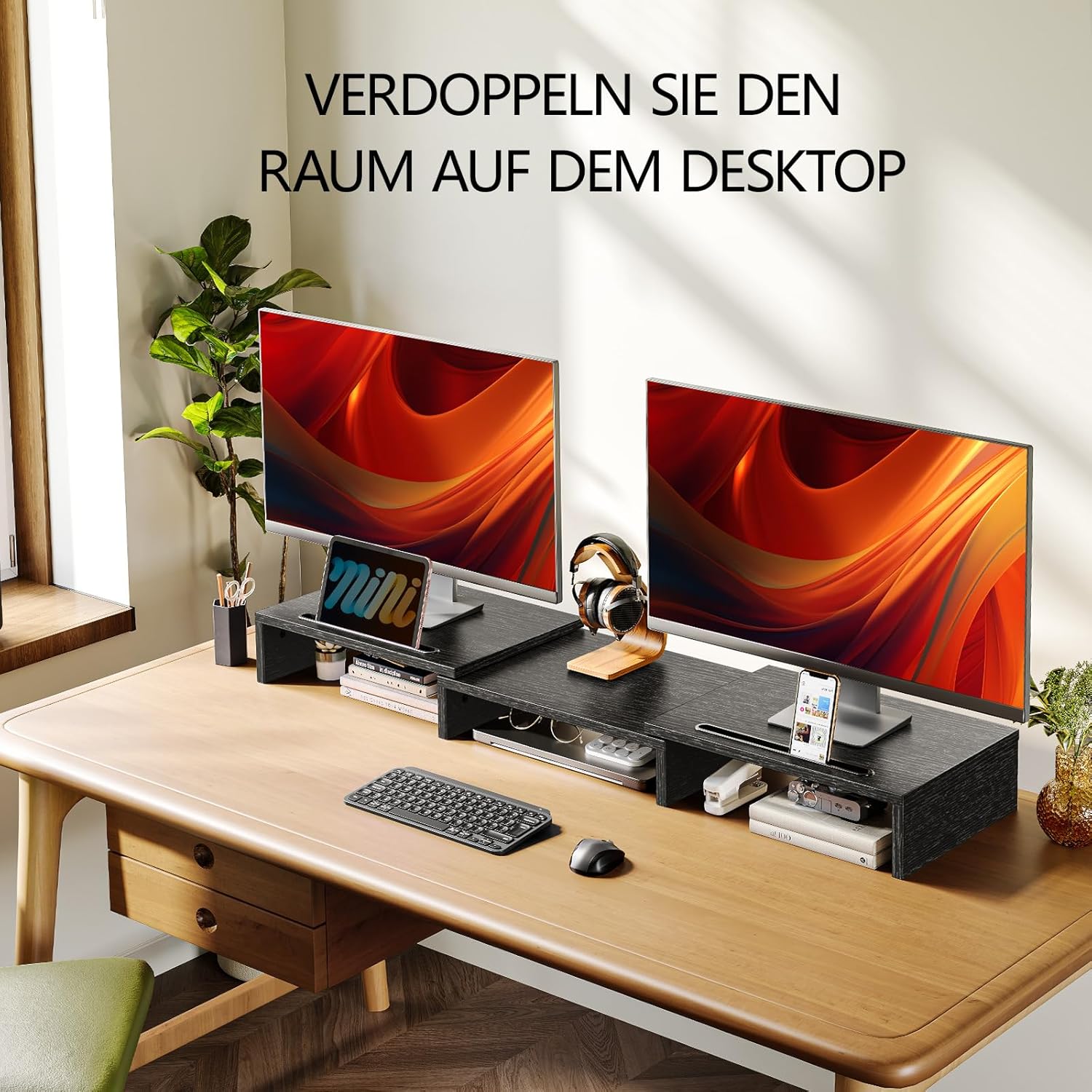 - Extra multifunktionale Steckplätze: Einzigartiges Steckplatz-Design für Tablet, Handys und zum Verwalten von Kabeln, Stiften, Clips und anderen Bürobedarf. Dieser Dual-Monitor-Riser bringt Ihnen ein bequemeres Leben zu Hause und im Büro.