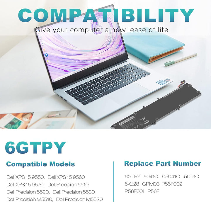 - 【 Hochwertiges Material 】: Der Dell 6GTPY Akku besteht aus Lithium-Ionen-Material, das eine gute Sicherheitsleistung und eine lange Lebensdauer hat.