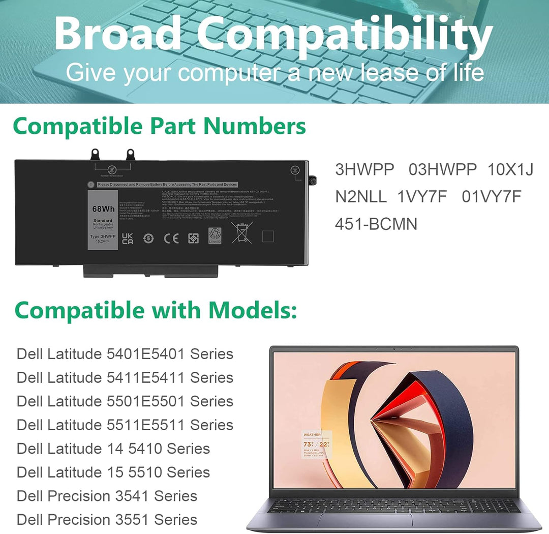 - Kompatible Modelle: Dell Latitude 14 5401 5411 Series, Dell Latitude 15 5501 5511 Series, Dell Precision 3541 3551 Series, 3HWPP 03HWPP 10X1J N2NLL 1VY7F 3YNXM 451-BCMN