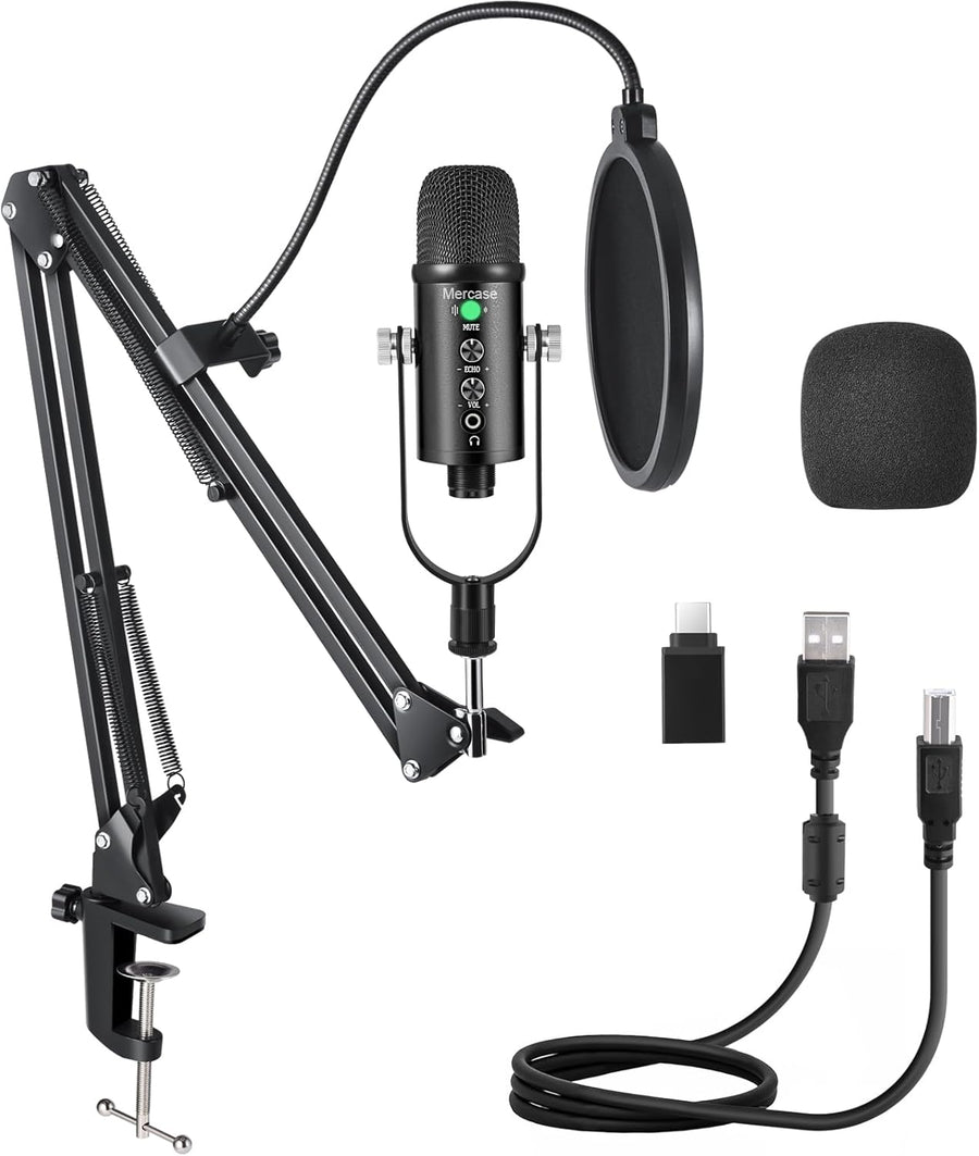 - đ€ ăPaketliste und exzellenter Kundenserviceă - Studio-Nieren-Kondensatormikrofon-Kit mit: 1x Mikrofon, 1x110 Zoll USB-Kabel, 1xType-C-Adapter, 1x TischstĂ€nder, 1x Auslegerarm, 1x Schwammabdeckung, 1xBedienungsanleitung. FĂŒr unser Musikmikrofon