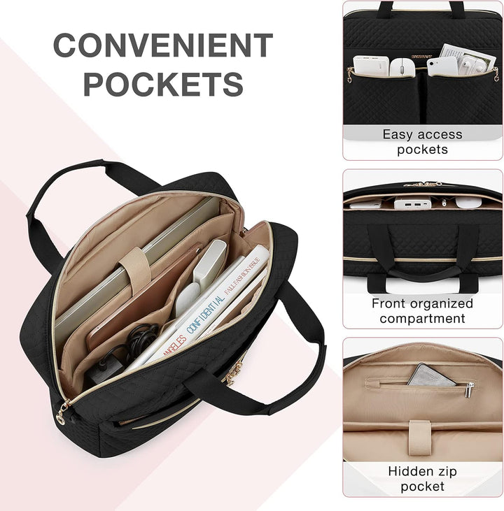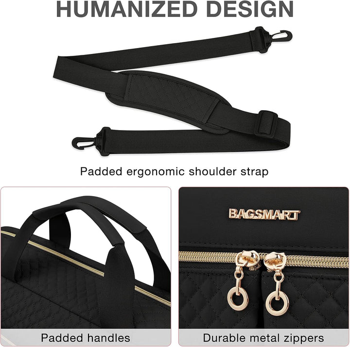 - BEQUEME & ORGANISATORISCHE TASCHEN - Verstellbarer und "C"-förmig gepolsterter ergonomischer Schultergurt entlastet die Schulter; gepolsterte Griffe aus veganem Leder bieten leichten Tragekomfort; Gepäckgurt ermöglicht das Aufschieben der Aktentasche
