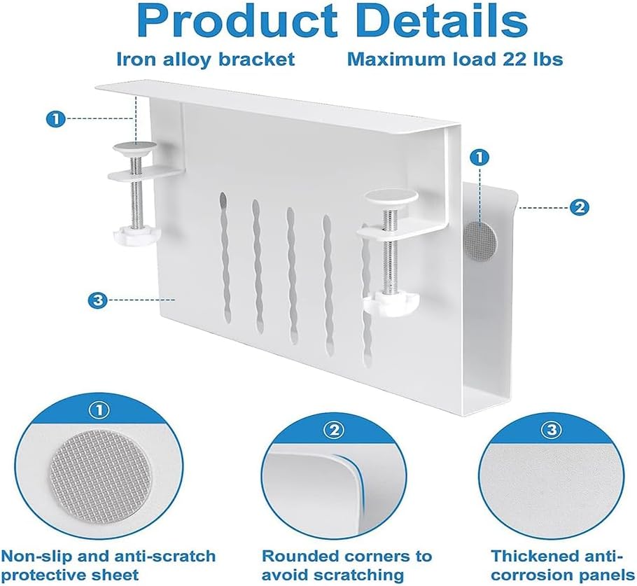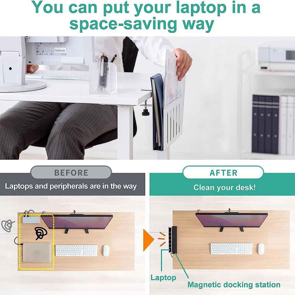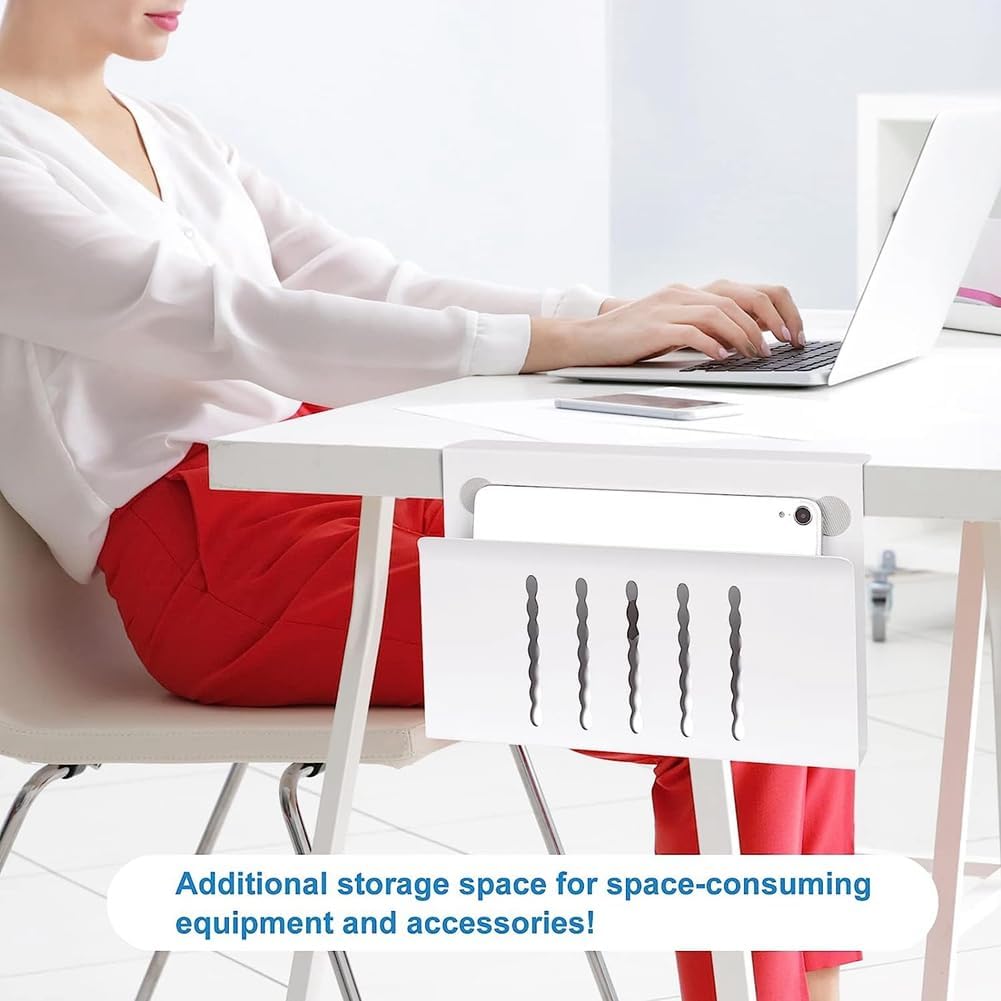 - Diese Schreibtischseitenhalterung kann nachträglich an der Seite eines Schreibtisches angebracht werden, um problemlos einen Laptop, ein Tablet, versteckte Kabel, Innenzubehör, Handbücher, Dokumente, Notizbücher und andere Gegenstände zu halten.