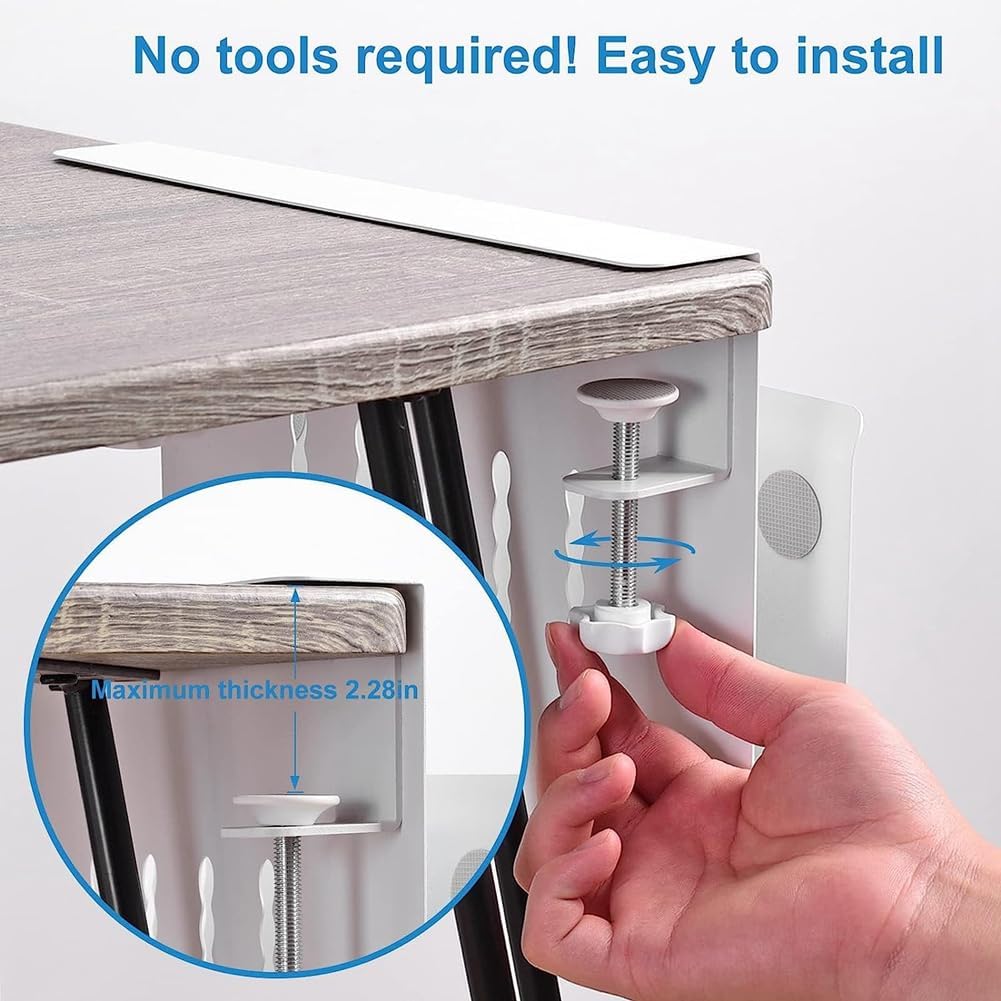 - Der Klemmtyp erfordert kein Bohren, er überall leicht installiert werden kann, und das Silikonkissen verhindert Kratzer auf Schreibtischen und anderen Gegenständen, an denen er festgeklemmt wird.