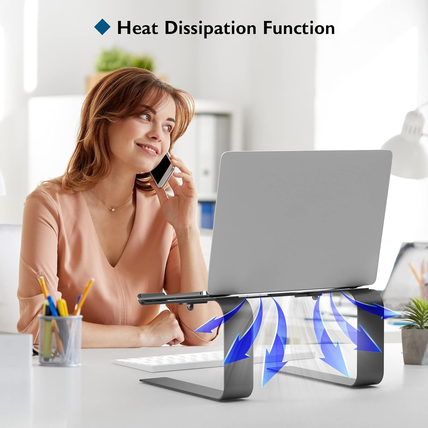 - Wärmeableitung: Der Schlüssel zur Verlängerung der Lebensdauer Ihres Laptops liegt darin, ihn kühl zu halten. Dieser Laptop-Ständer hebt Ihren Laptop von einer flachen Oberfläche an, so dass die Luft Ihren Laptop kontinuierlich kühlen und vor