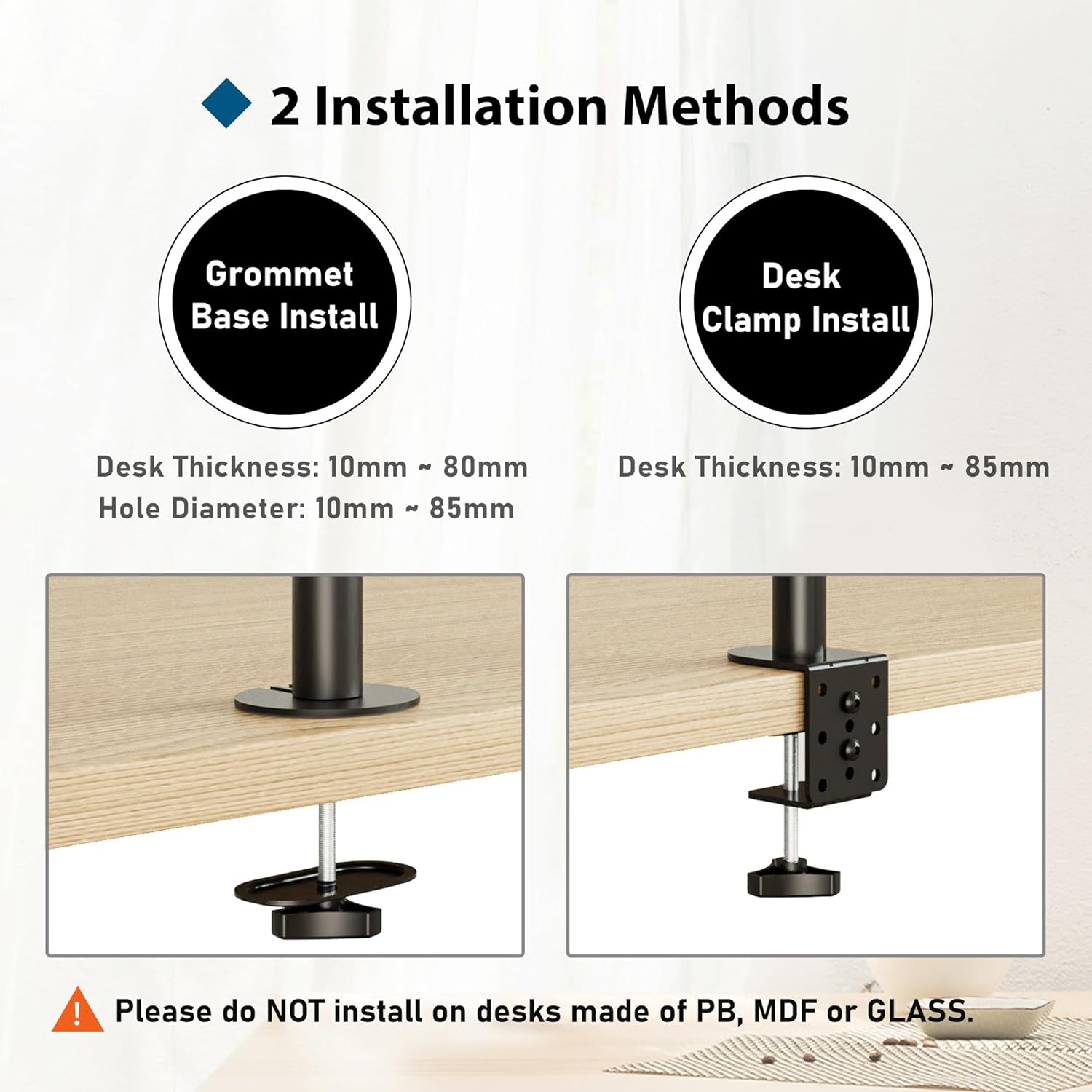 - Einfach zu installieren: Alle erforderlichen Befestigungen und Bedienungsanleitung wird mitgeliefert. Sie können den Ständer innerhalb 10 Minuten zusammenbauen. 2 Montagemöglichkeiten – 1) Tischklemme: robuste C-Klemme bietet höchste Stabilität, hält Ihren Bildschirm fest und sicher an Ort und Stelle; 2) Bodenbefestigung für Schreibtische mit Durchbohrloch